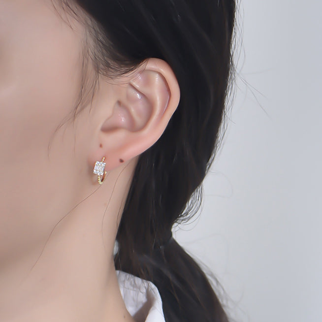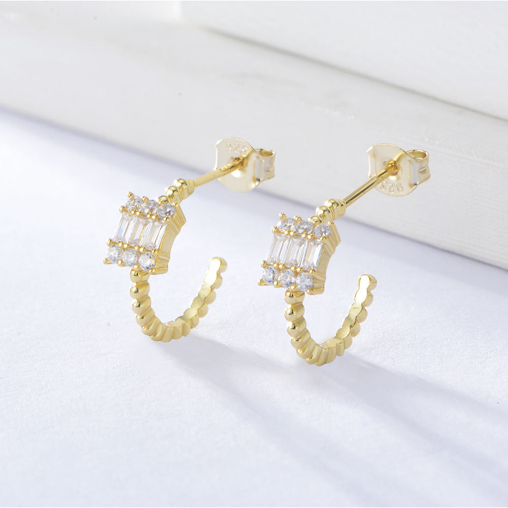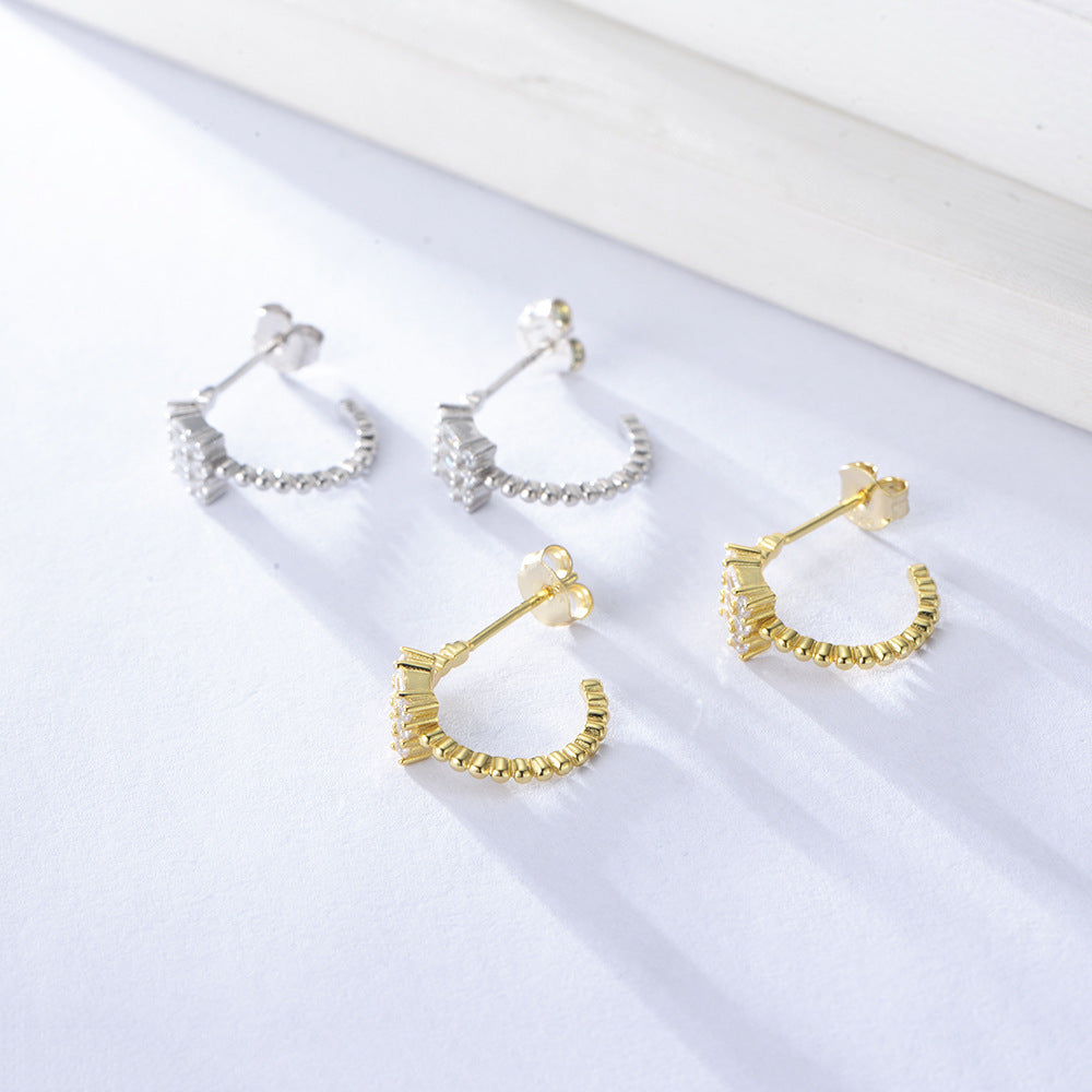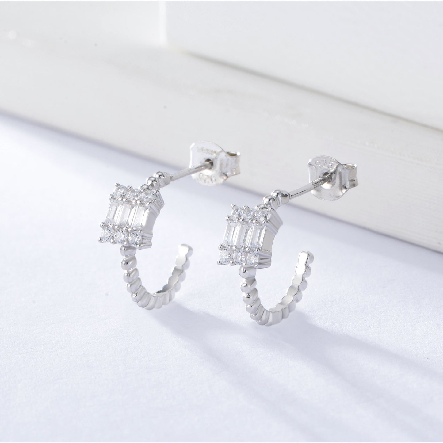 C-shape with Rectangle Zircon Silver Studs Earrings for Women