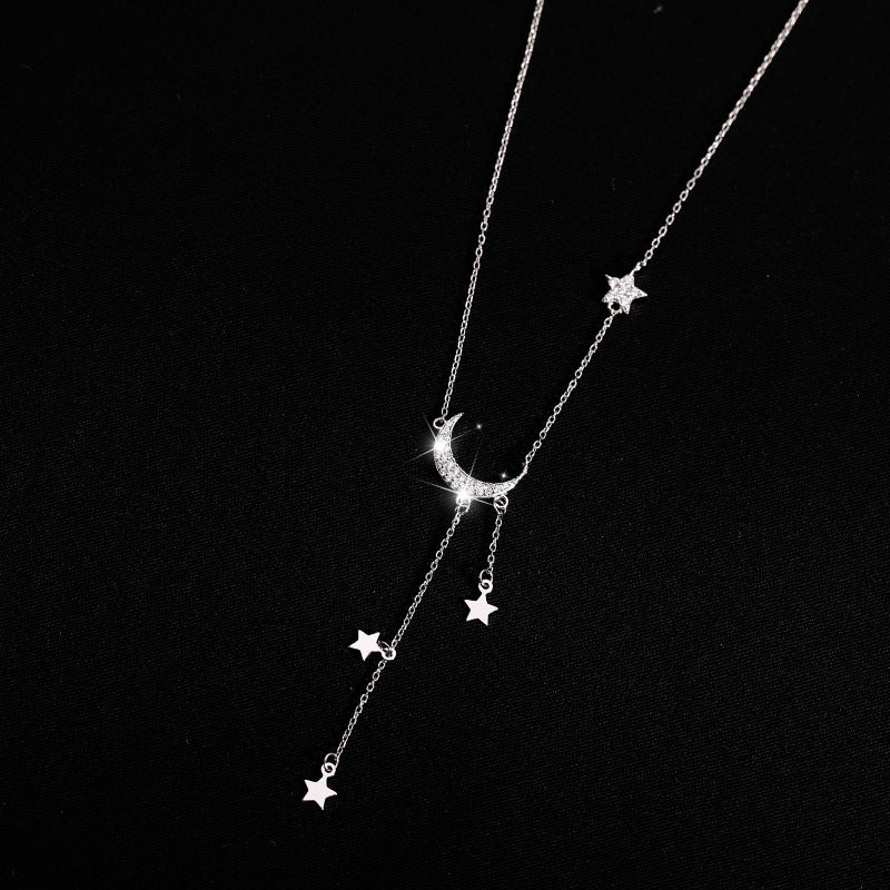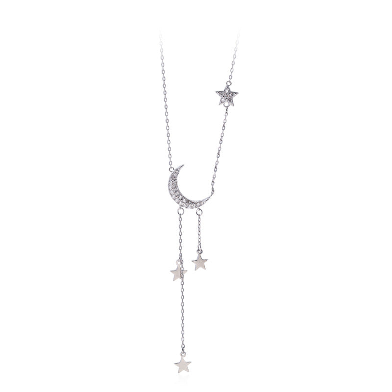 Zircon Star Moon Tassel Silver Necklace for Women