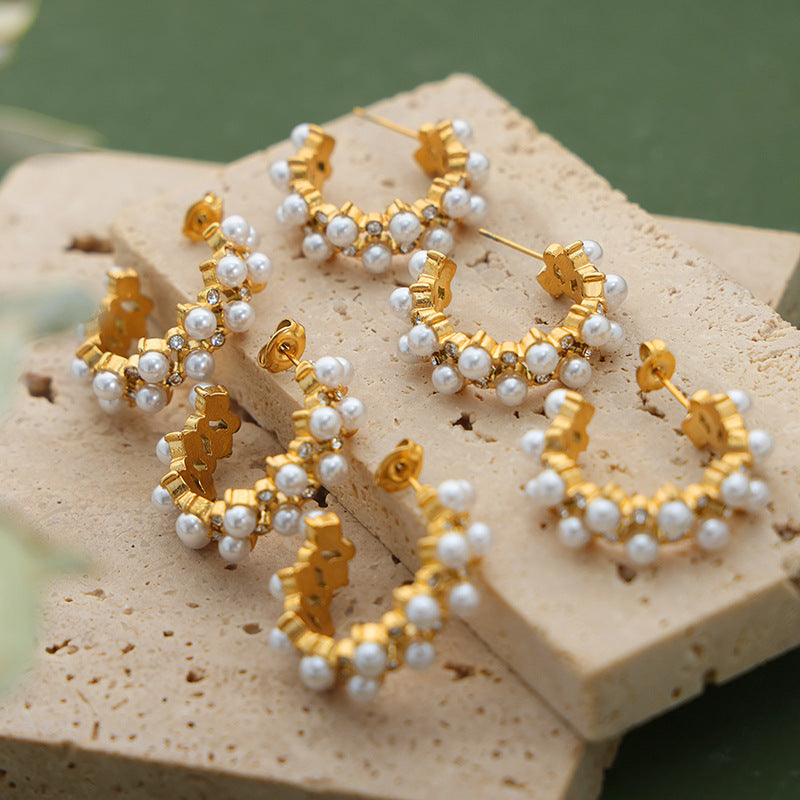 Elevate your jewelry collection with these C-shaped geometric earrings that exude light luxury and a unique temperament. The high-gloss pearls and inlaid zircon details add a touch of sophistication, perfect for any occasion.