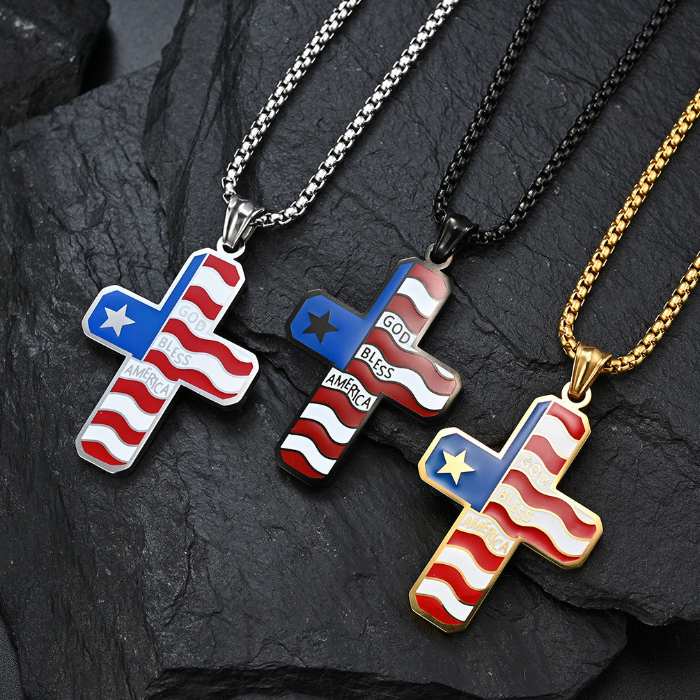 Amazon Jewelry Sellers Hot-Selling Men's Stars and Stripes Cross Necklace