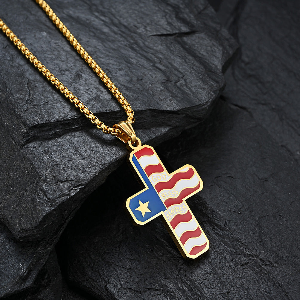 Elevate your accessory game with this exquisite necklace that seamlessly blends tradition and contemporary design. It's not just a piece of jewelry; it's a statement of your personal style. Don’t miss out on this hot-selling item—add the Stars and Stripes Stainless Steel Cross Necklace to your cart today and make a lasting impression!