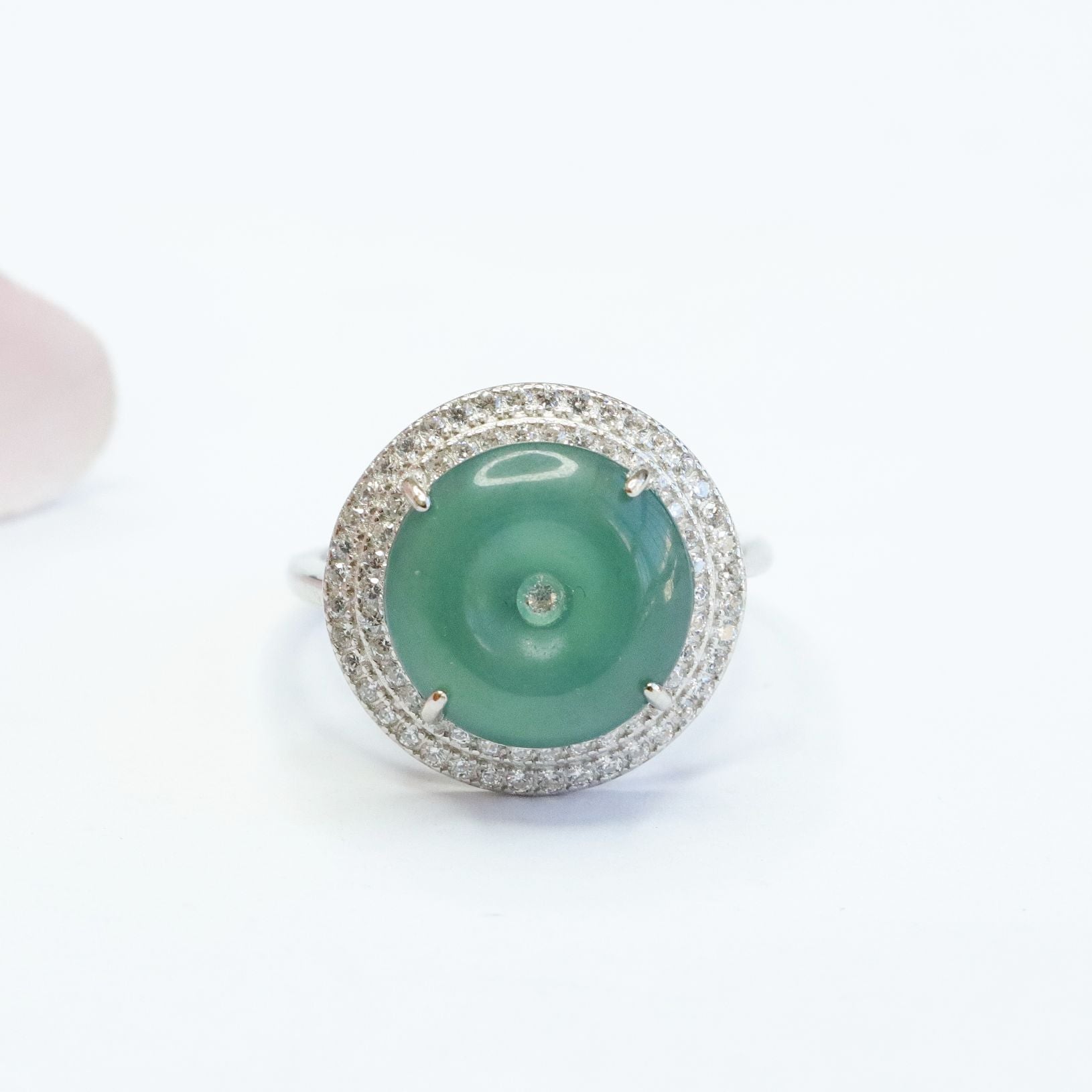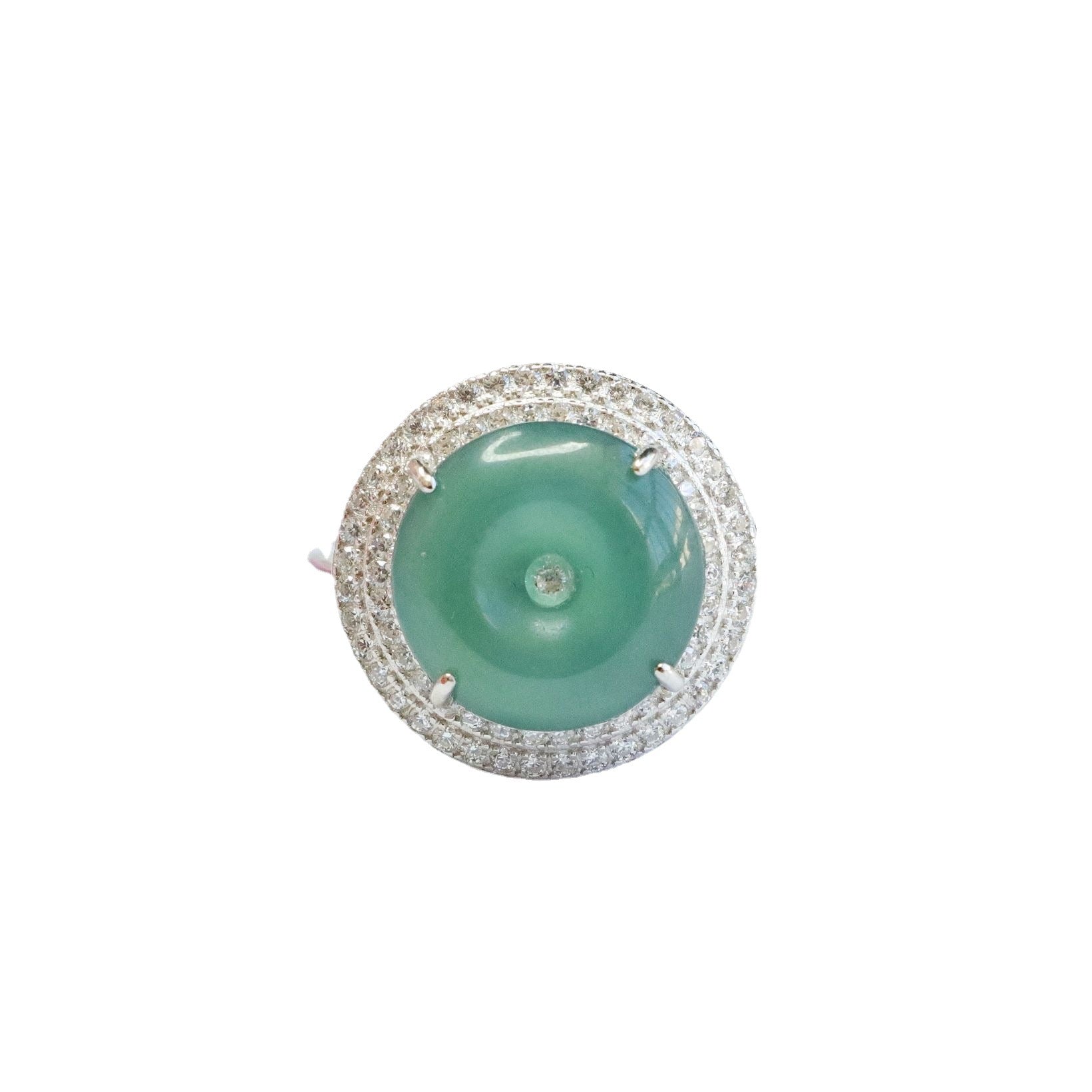 Sterling Silver Jade Ring with Zircon Halo Detail