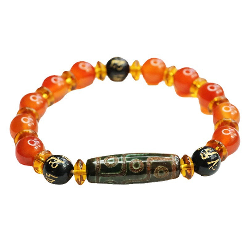 Embrace timeless elegance and spiritual significance with our Nine Eyed Heavenly Bead Bracelet featuring Red Agate and the Six-character Mantra. Crafted with sterling silver and adorned with the powerful Red Agate, this bracelet is designed to bring fortune and prosperity to its wearer.