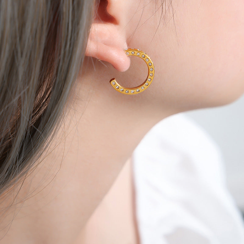 Exquisite Zircon Geometric Earrings in Titanium Steel Gold Plating
