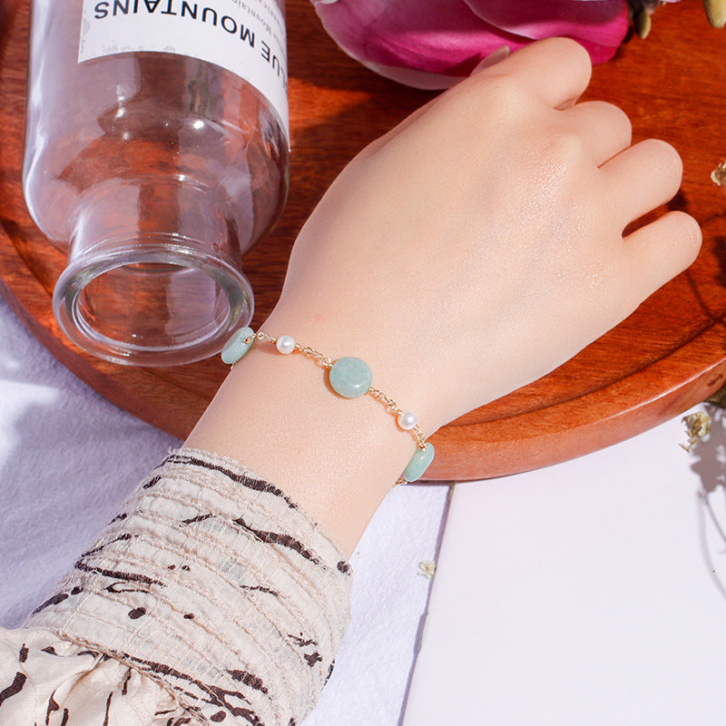 Personalized Handcrafted Aventurine Jade and Freshwater Pearl Bracelet for Women