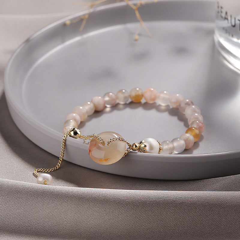 Elegant Cherry Blossom Agate Pearl Bracelet
