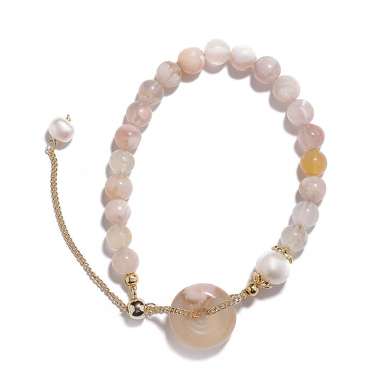 Embrace elegance with the women's new style Natural Crystal Bracelet. This exquisite piece features cherry blossom agate and pearl, offering a touch of sophistication to any ensemble.