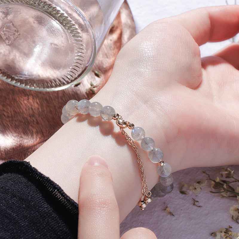 Strawberry Crystal and Moonlight Stone Sterling Silver Bracelet