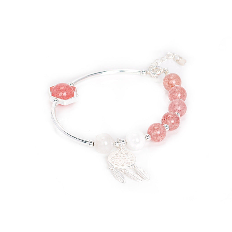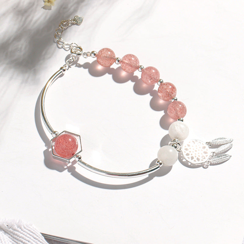 Strawberry Crystal White Moonlight Stone Bracelet