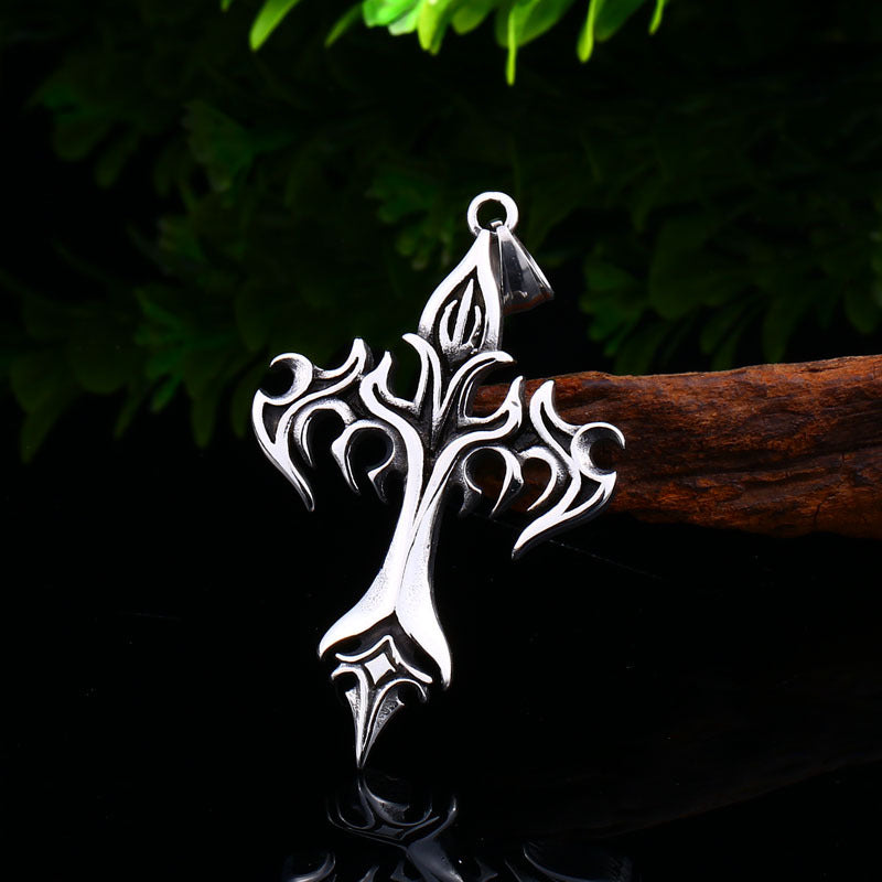 Titanium Steel Retro Flame Cross Pendant for Men - Trendy European and American Accessories