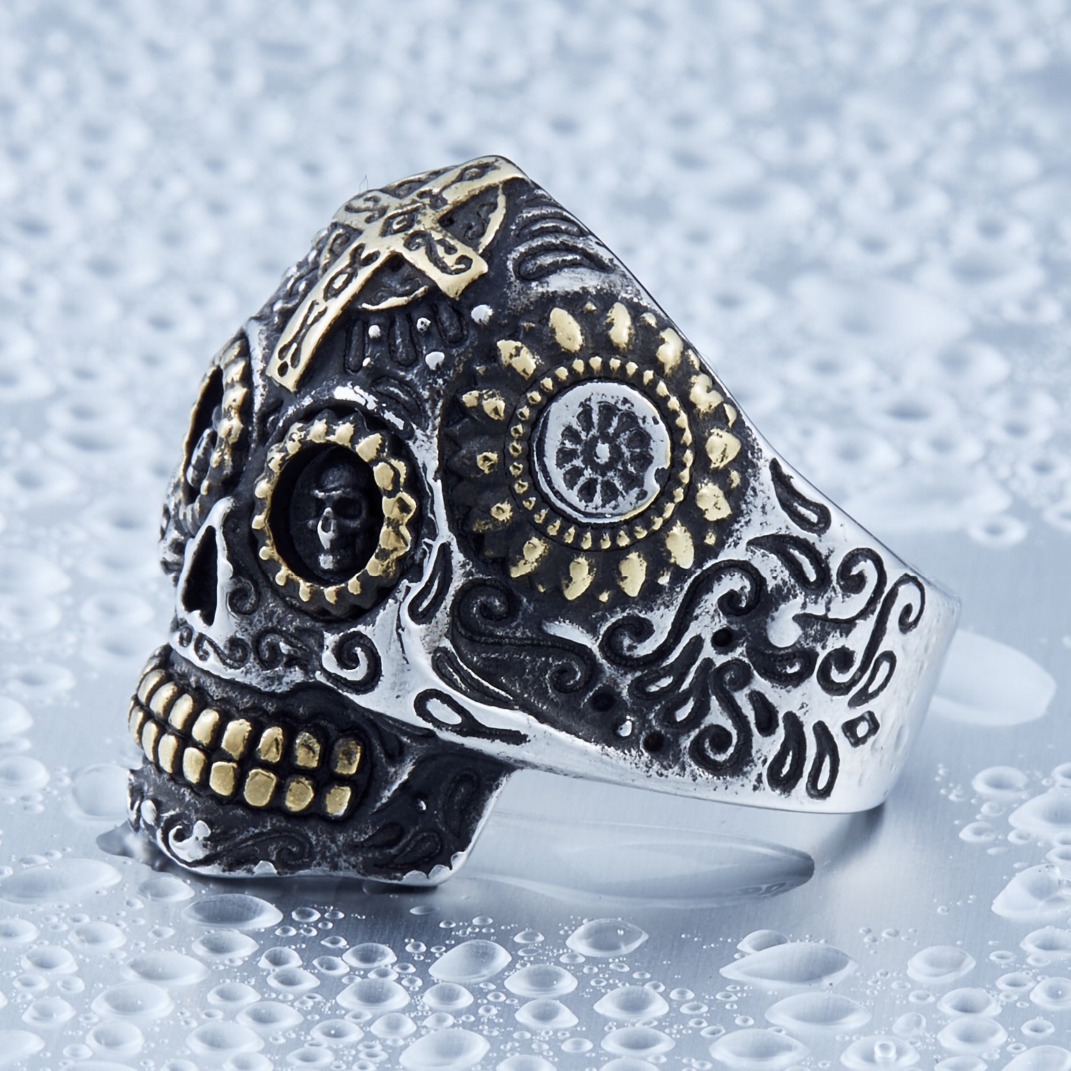 • Domineering Design: Featuring a skull motif and intricate cross engravings, this ring makes a powerful statement that reflects your strong personality.