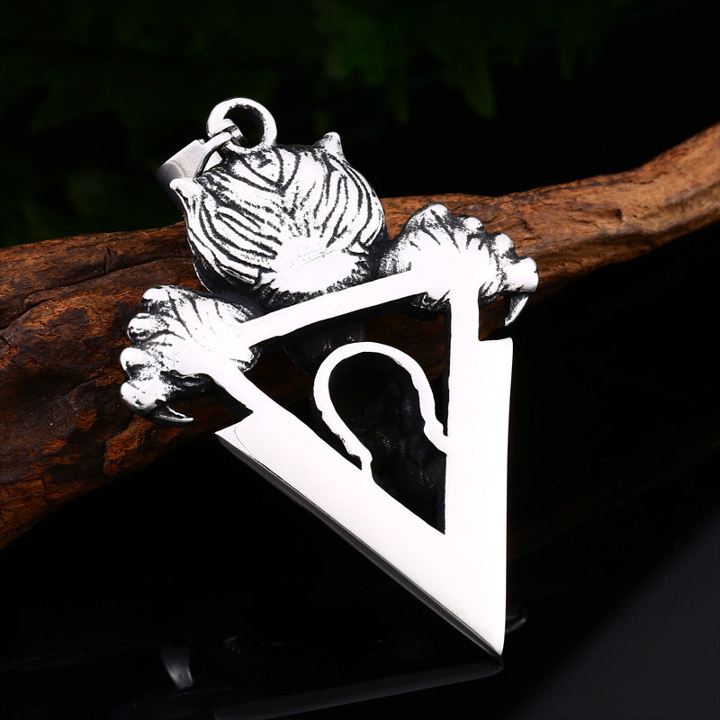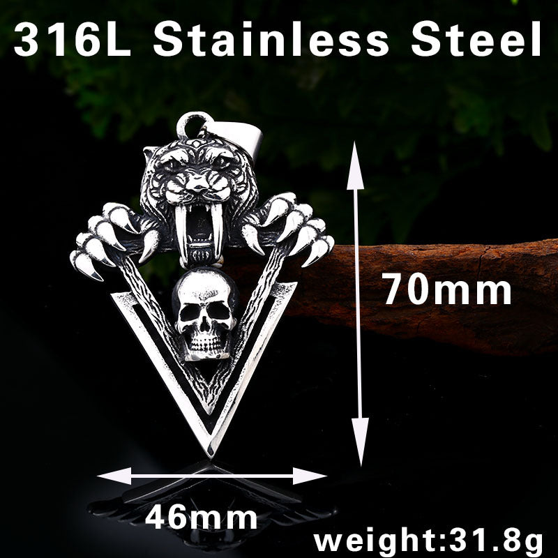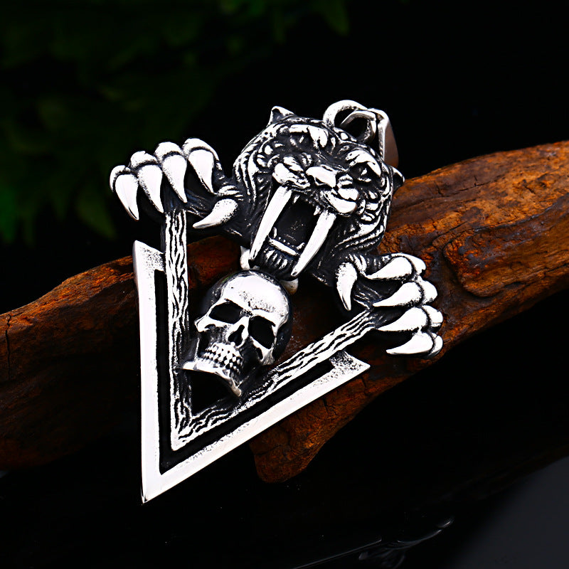Vintage-Inspired Men's Tiger Skull Pendant in Stainless Steel and Titanium, Perfect for Wholesale Jewelry Trade