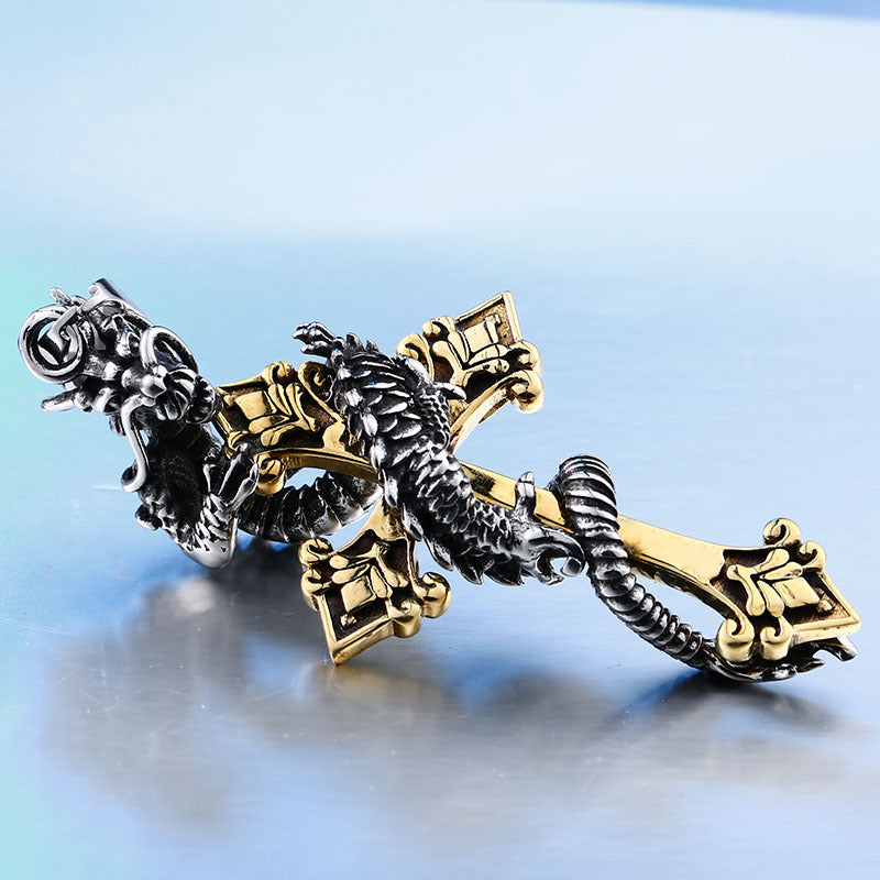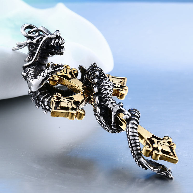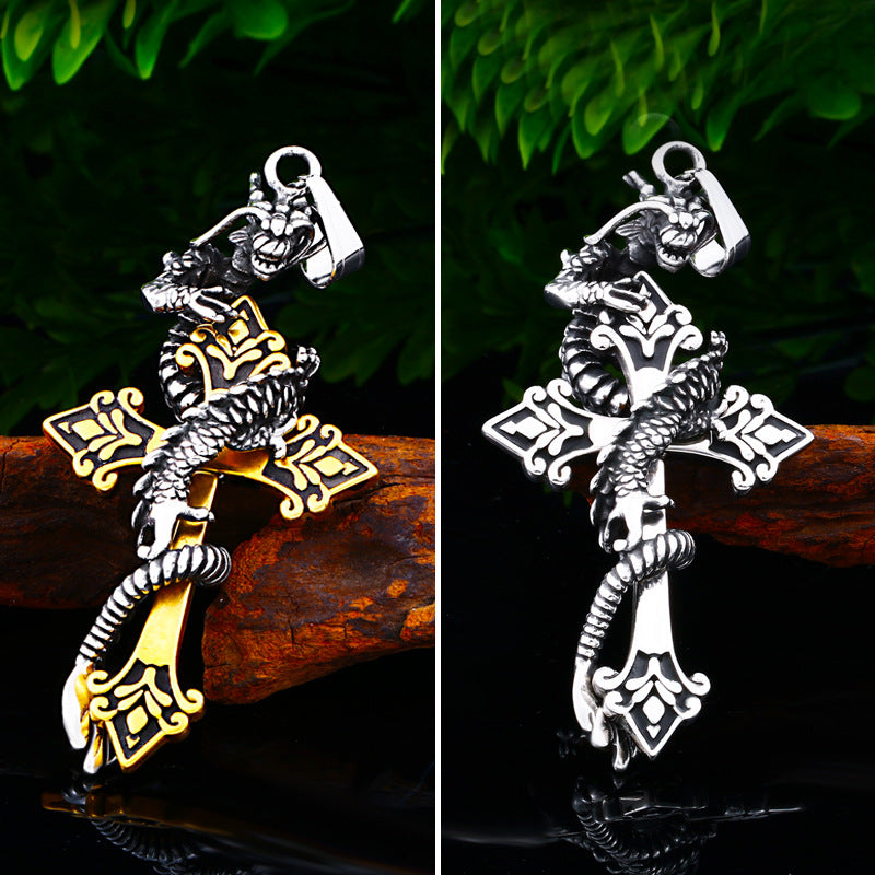 Elevate your accessory game with this stunning pendant. Whether you're looking to express your individuality or make a bold fashion statement, the Men's Domineering Titanium Steel Panlong Engraved Cross Pendant is the perfect choice.
