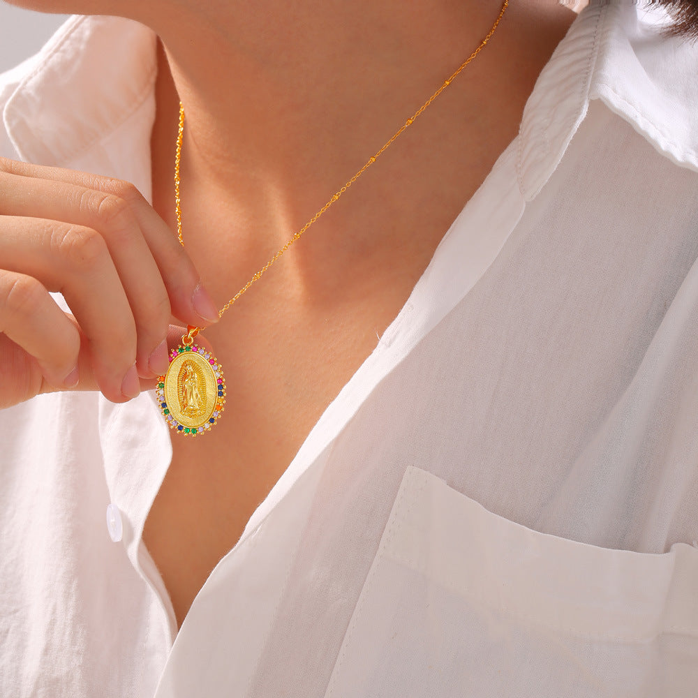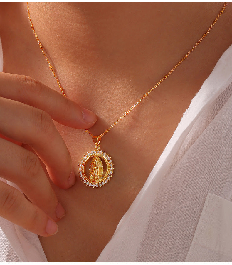 Virgin Mary Copper Pendant Necklace with Zircon Inlay