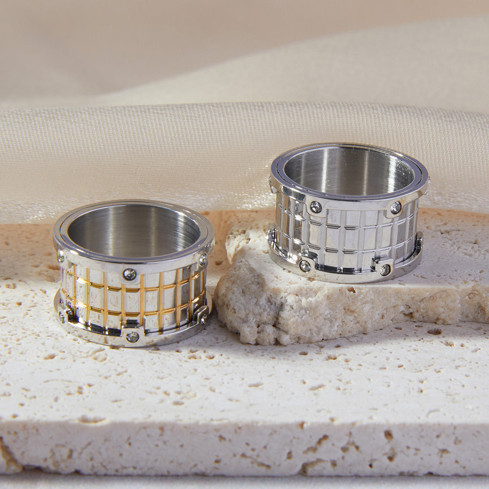 Retro British Style Zircon Double Ring Titanium Steel Fashion Statement Piece