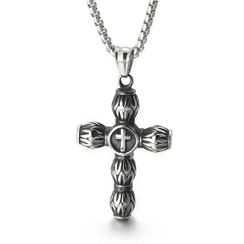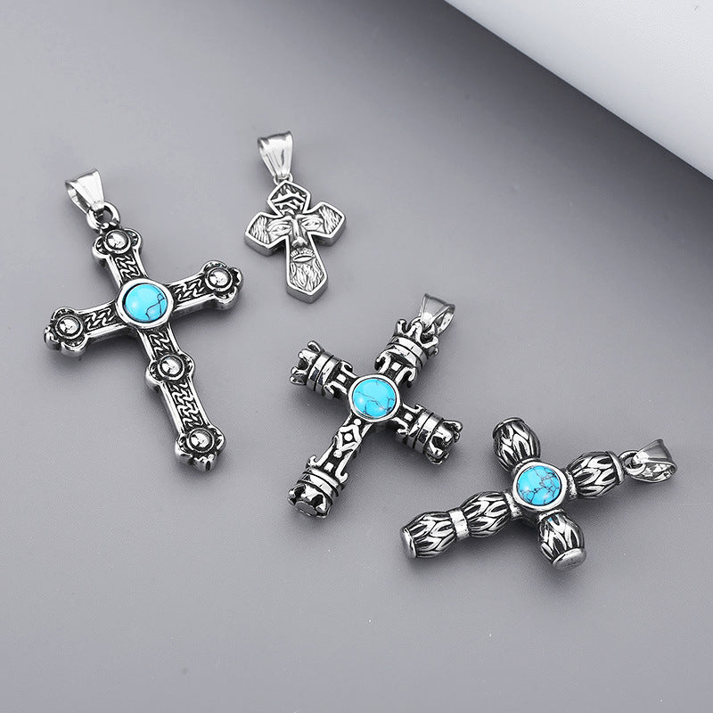 Trendy Winter Men's Pendant with Turquoise Cross in Titanium Steel Crown Design