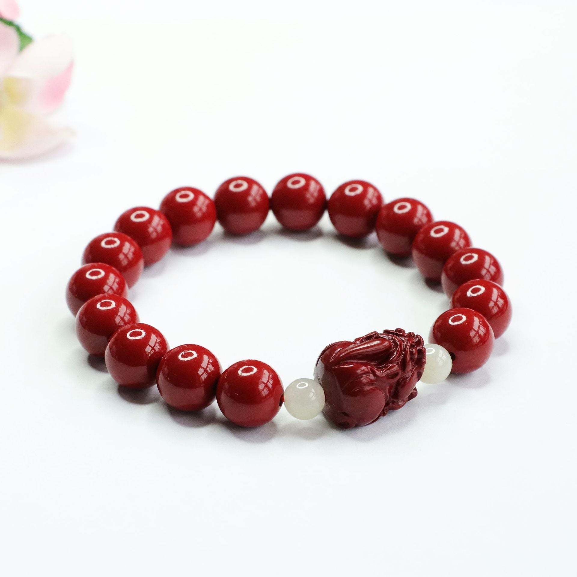 Unleash the power of prosperity and fortune with our Cinnabar Purple Gold Sand Bracelet. Crafted with the finest materials, this bracelet features Pixiu Hetian Jade, believed to attract wealth and protect its wearer. The brilliant integration of Cinnabar Stone and Sterling Silver showcases an exquisite blend of elegance and positive energy.