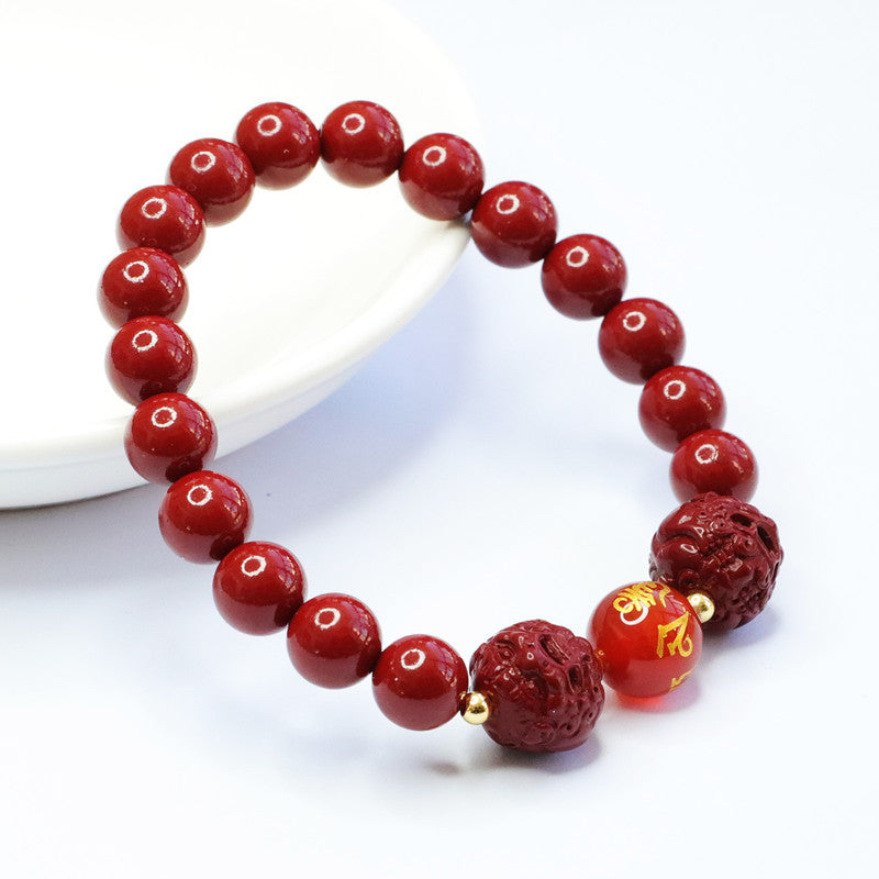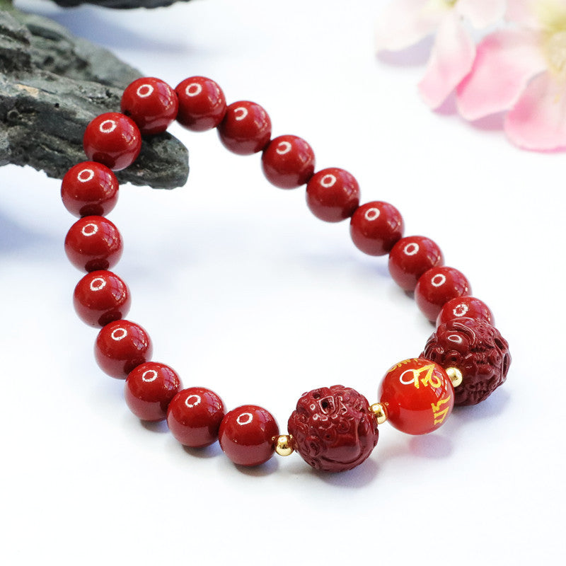 Enhance your luck and style with our Fortune's Favor bracelet, featuring exquisite Cinnabar and Chalcedony stones.