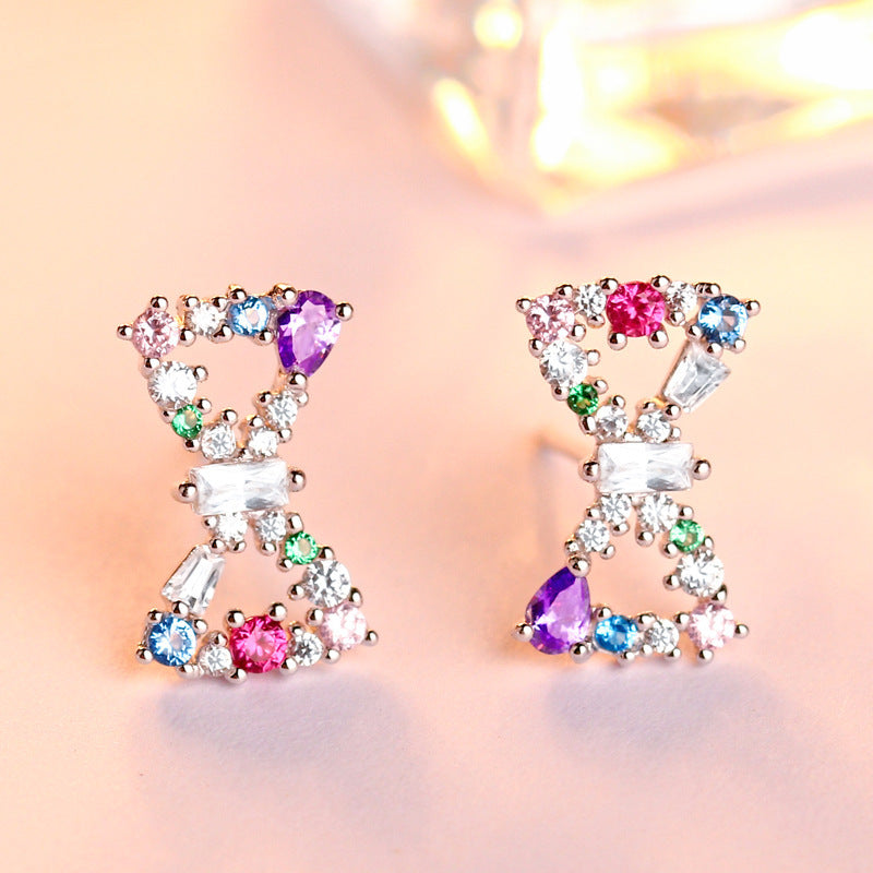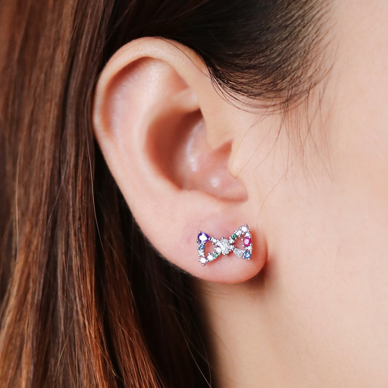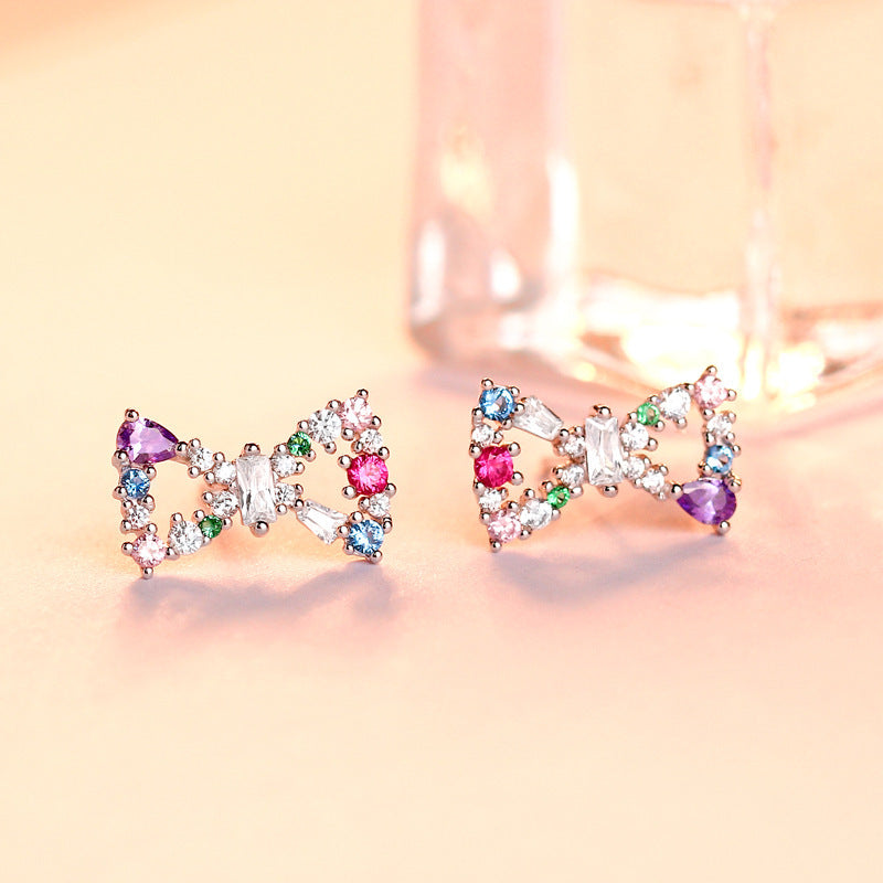 Colourful Zircon Bow Silver Studs Earrings for Women