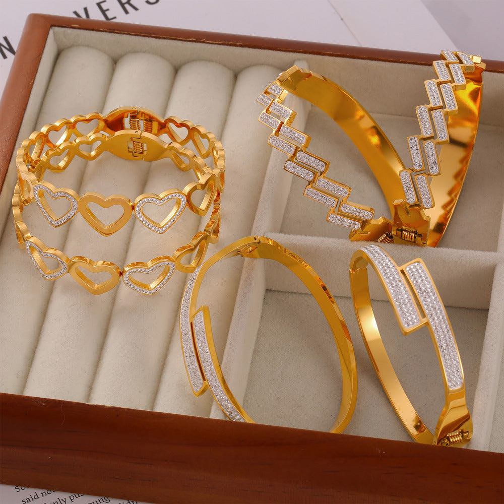Luxurious Multi-Layer Hollow Gold-Plated Titanium Steel Bracelet with Geometric Zircon Design