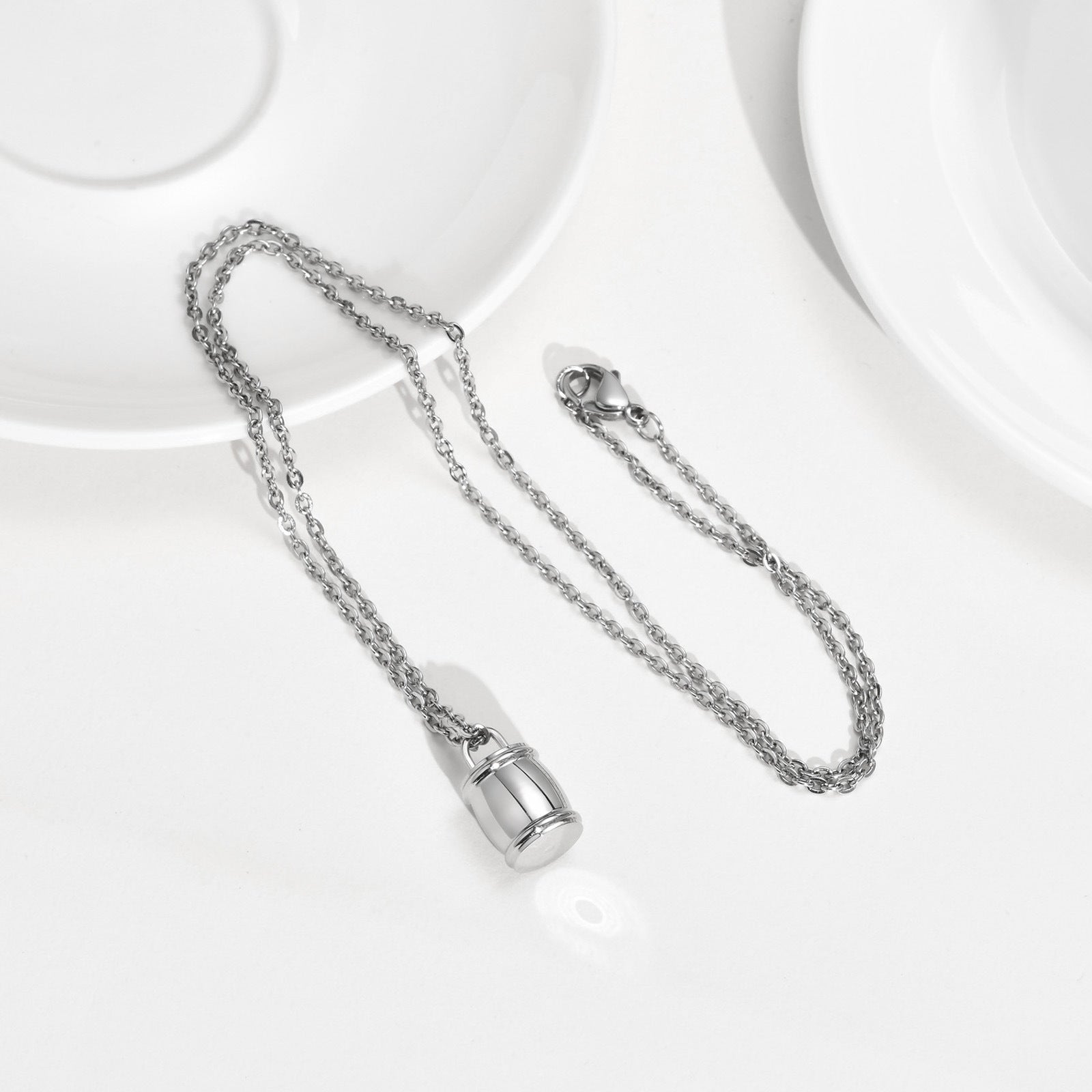 Discover the beauty of our Cross-border jewelry commemorative jewelry pendant stainless steel small jar urn pendant necklace can be opened, a unique piece designed to hold cherished memories close to your heart. This exquisite necklace combines elegance with functionality, allowing you to carry a small keepsake, whether it's a pinch of ashes, a lock of hair, or a tiny note, making it a perfect tribute to loved ones.