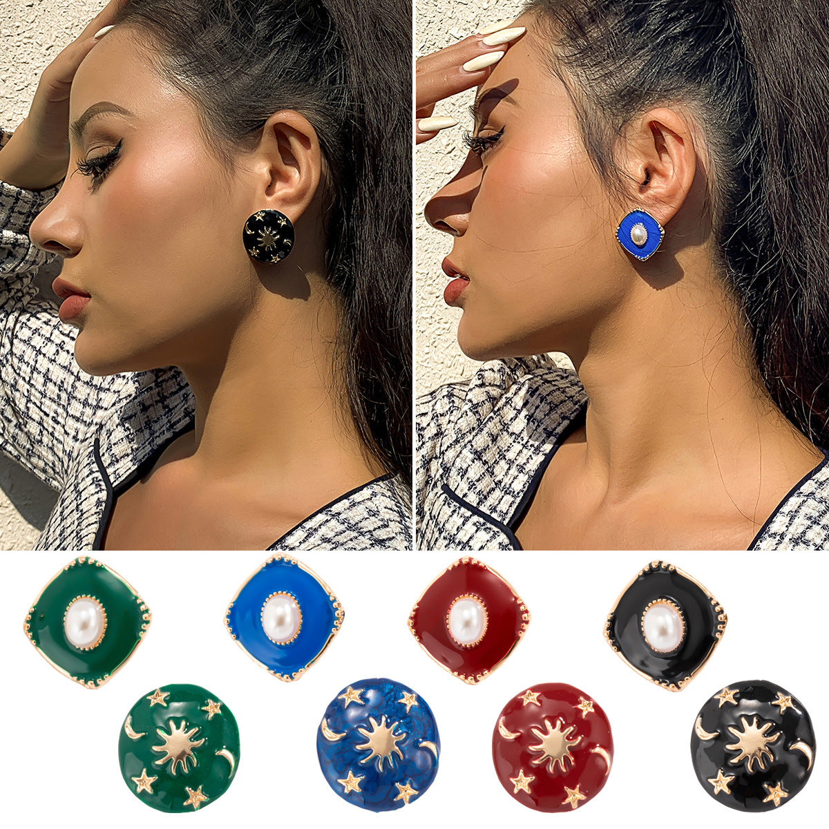 Customized European and American Jewelry, Unique Ethnic Metal Earrings with Oil Drip Detail, Star-Shaped Faux Pearl Earrings for Women
