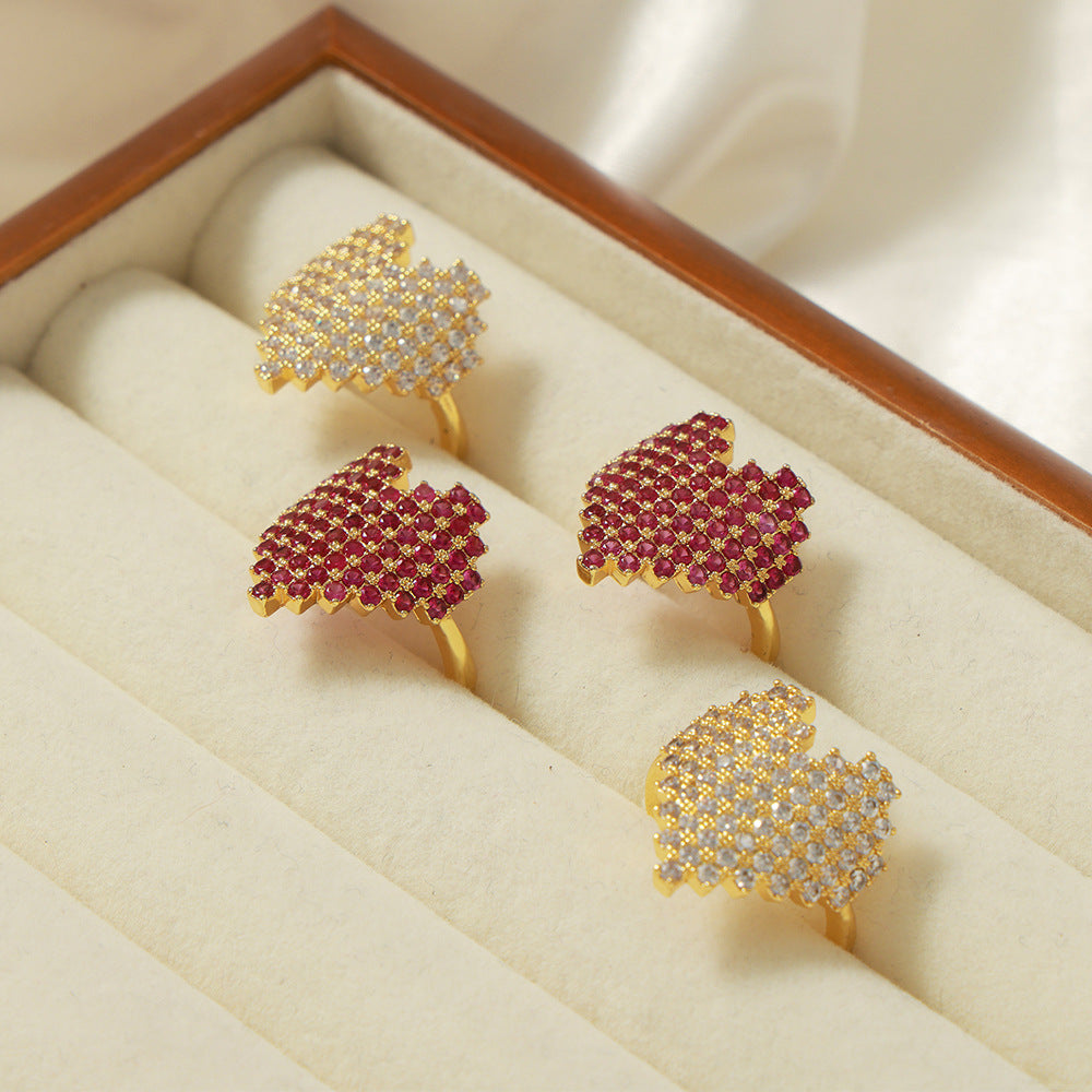 Experience Luxurious Elegance with our Adjustable Heart-Shaped Zircon Ring