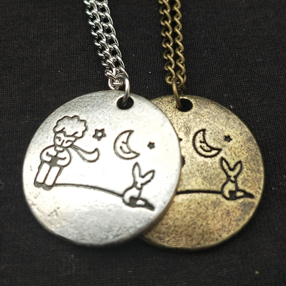 Unleash your inner fashion royalty with our Cross Border Popular Fashion Prince and Fox Necklace. This cute cartoon couple pendant is a must-have accessory inspired by popular European and American trends for men.