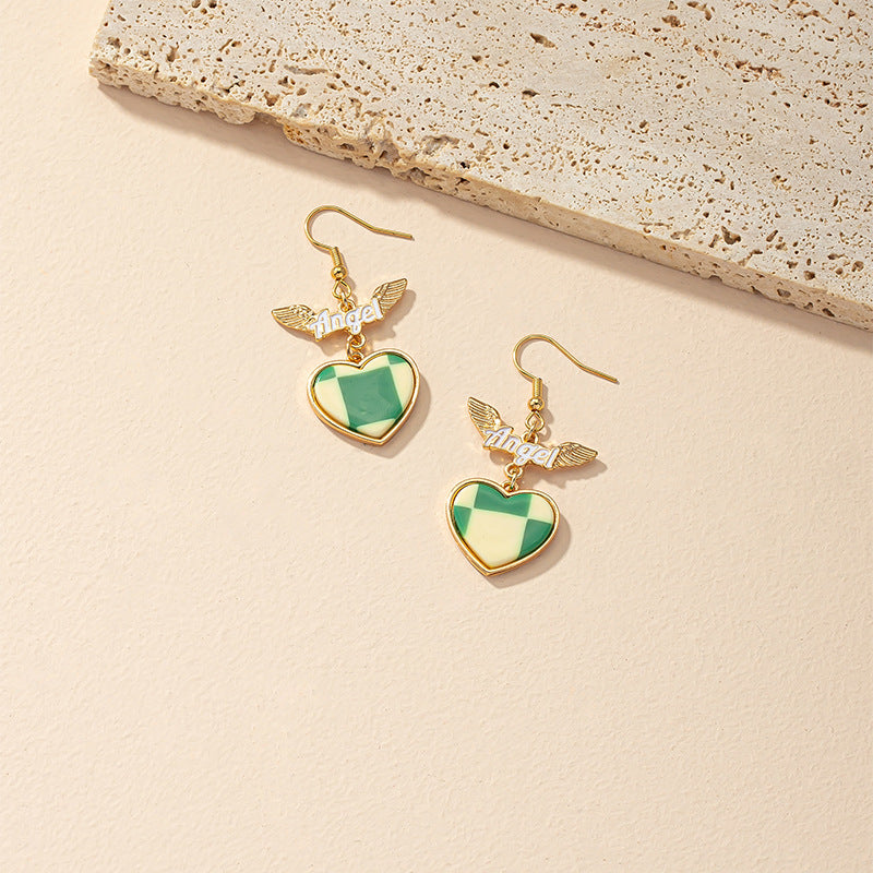 Angel Love Check Pattern Earrings with Cold and Fashionable Personality