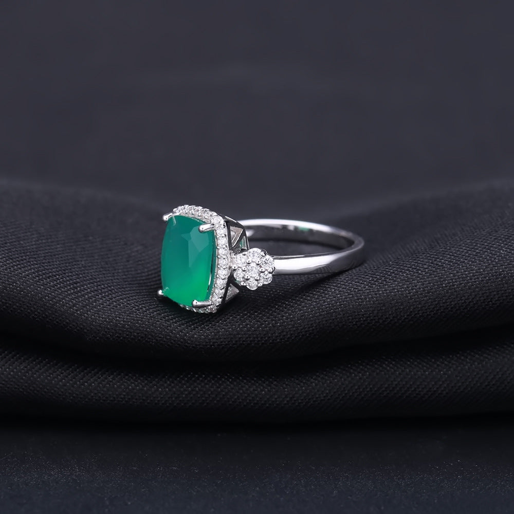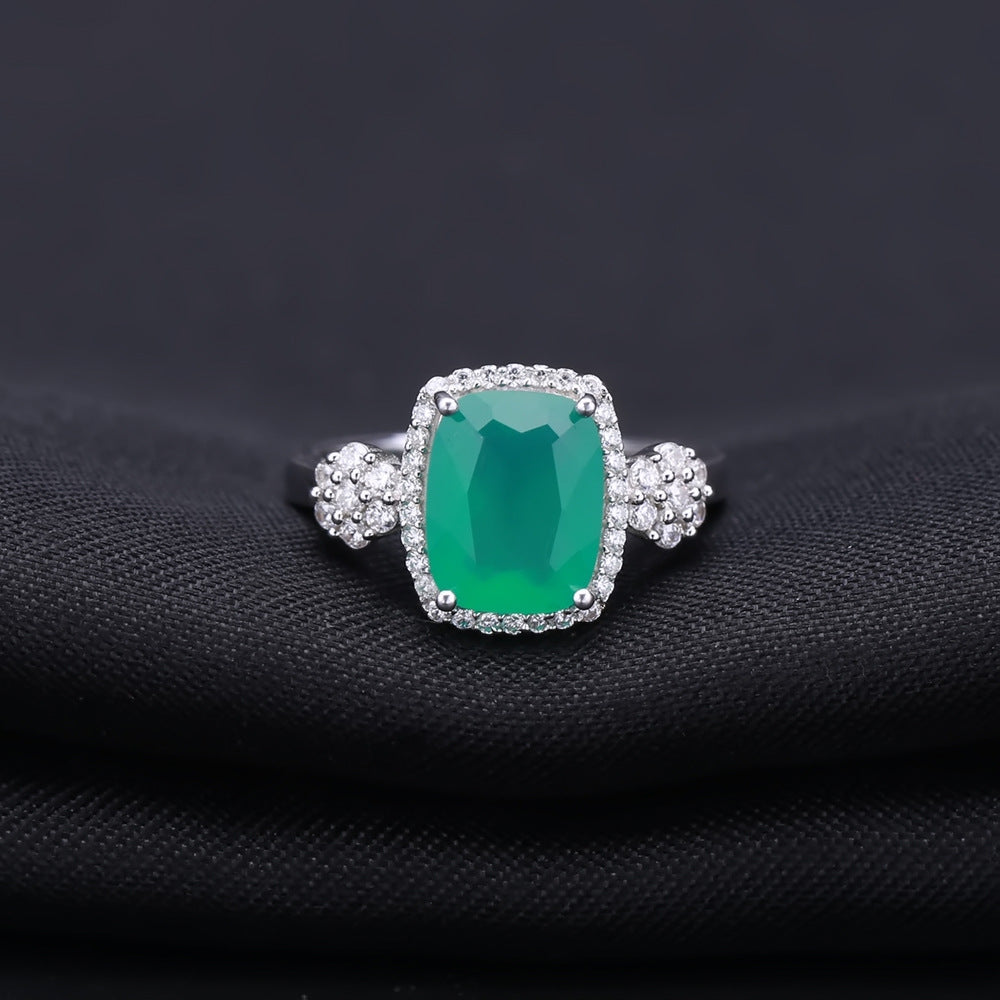 Fashion Design Sense Natural Green Agate 925 Sterling Silver Ring for Women