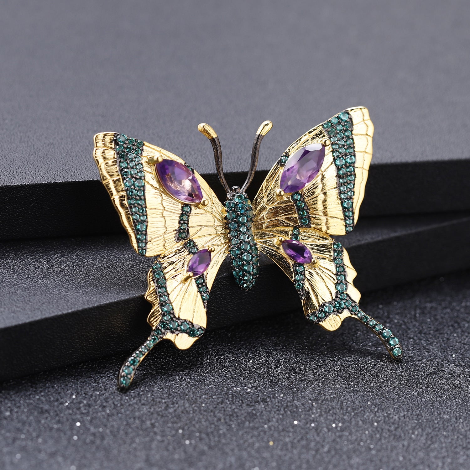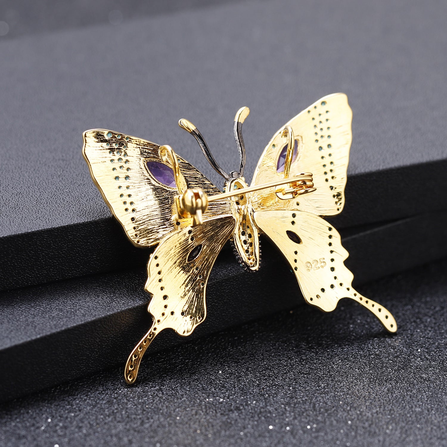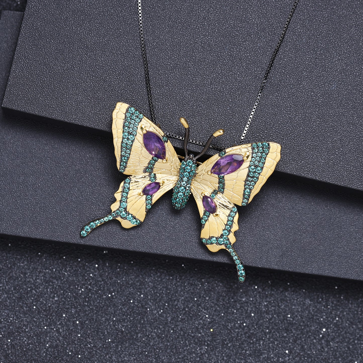 Brooch Pendant Dual-use Inlaid Natural Gemstone Butterfly Pendant Silver Necklace for Women