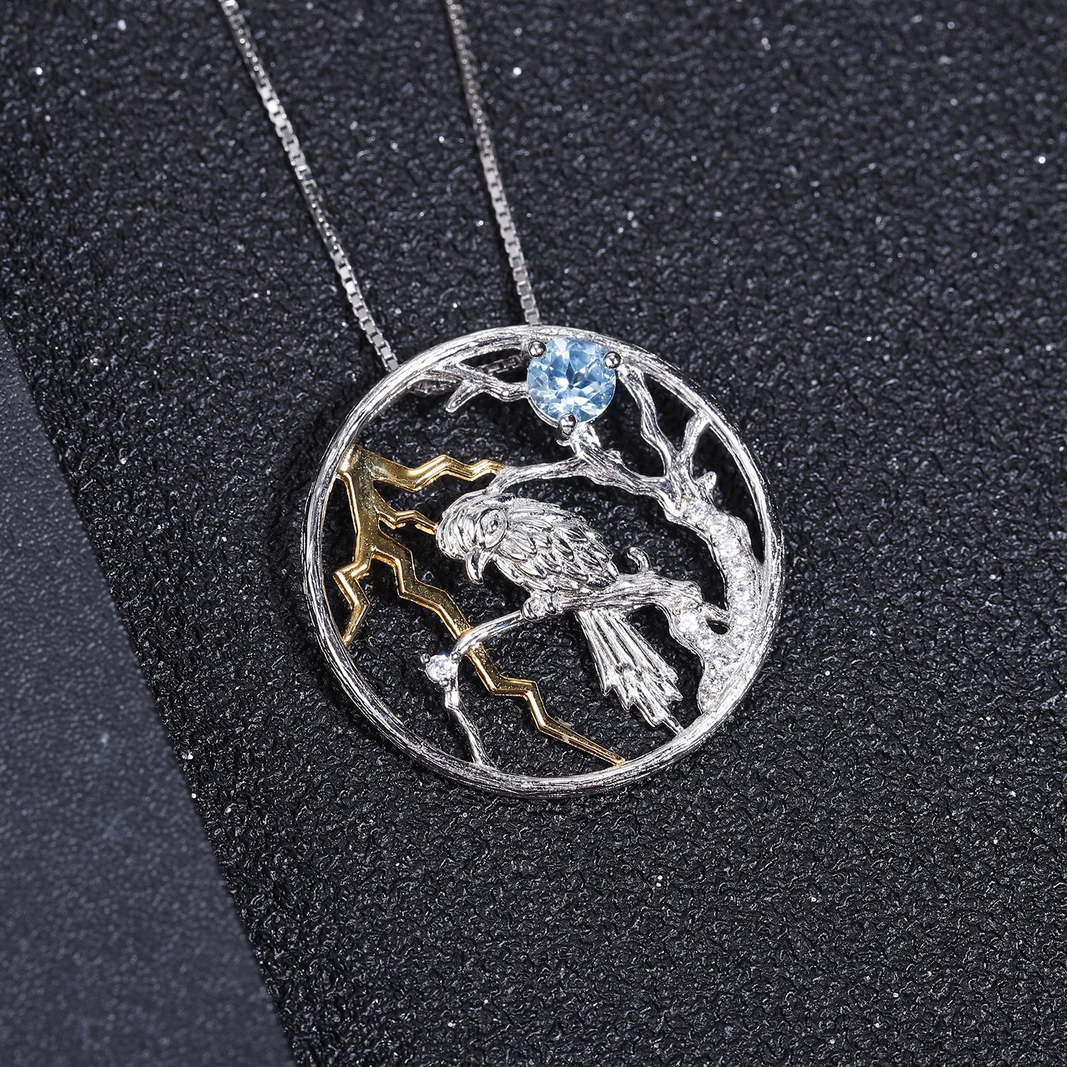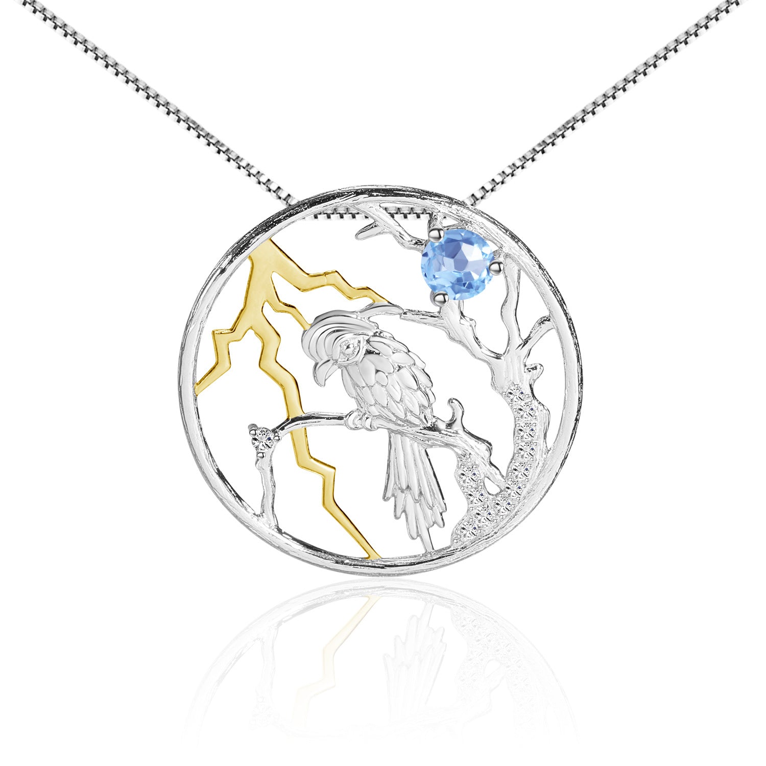 Designer Premium Natural Bird Pendant Design Natural Topaz Silver Necklace for Women