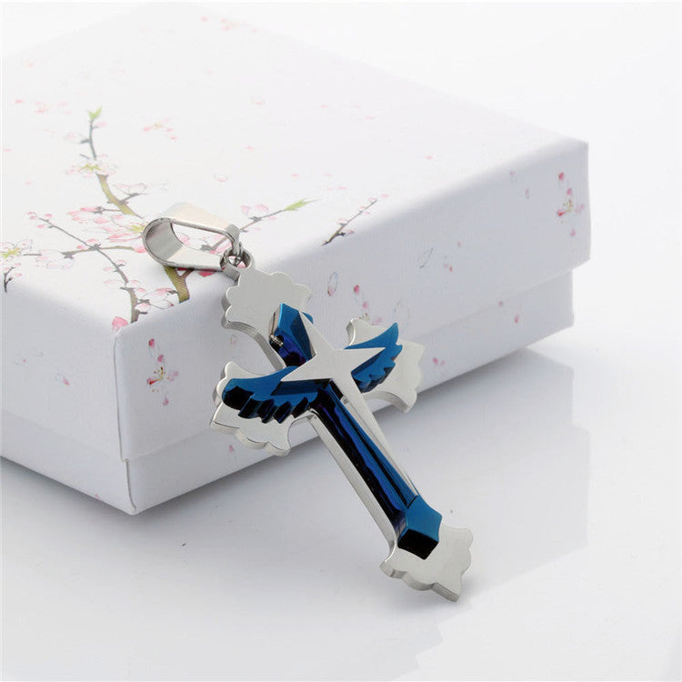 Stylish Stainless Steel Winged Cross Pendant for Men and Women - Fashionable Titanium Steel Jewelry