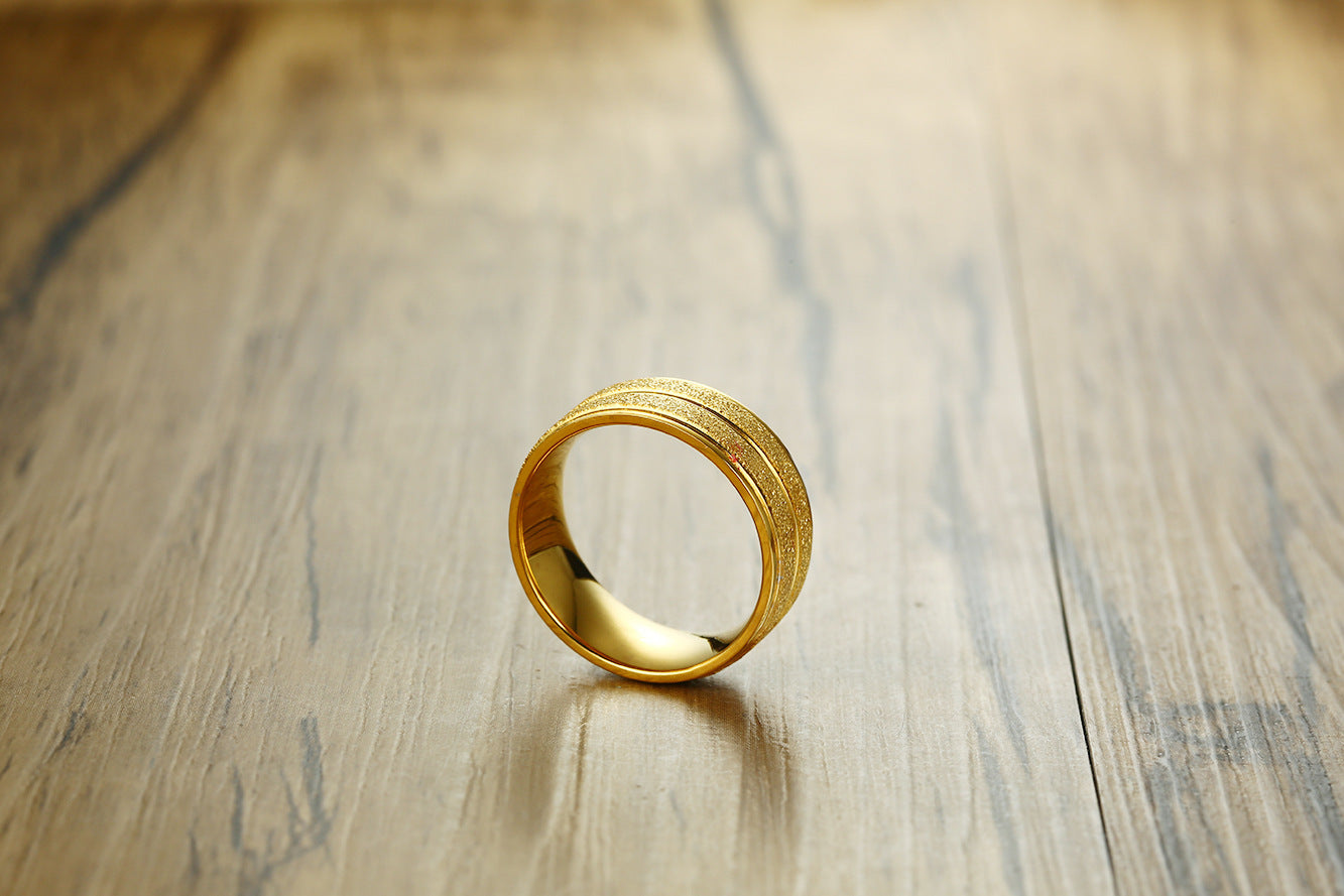 Elevate your look with this remarkable ring, and experience the perfect blend of fashion and functionality it offers. Grab your eBay cross-border e-commerce jewelry, face width 8MM titanium steel matte groove ring men's gold ring for men today and make a statement like never before!