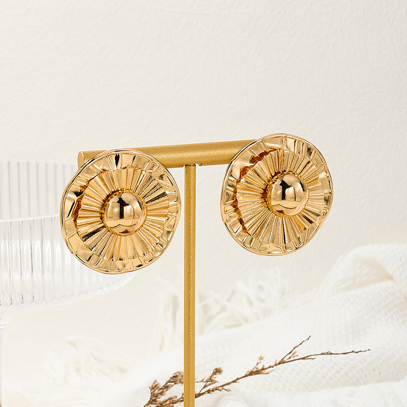 Step into a world of sophistication with our Vienna Verve collection of earrings that exude an atmosphere of elegance inspired by Europe and the United States. Crafted with high-grade metal, these pleated round buttons earrings are a true symbol of luxury.