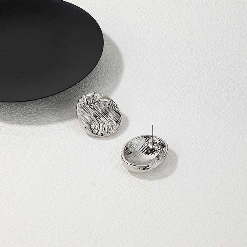 Embrace the sophistication of our Europe and the United States cross-border temperament earrings. These round metal texture earrings are a wholesale sensation, designed for the modern woman with a keen eye for style and individuality.
