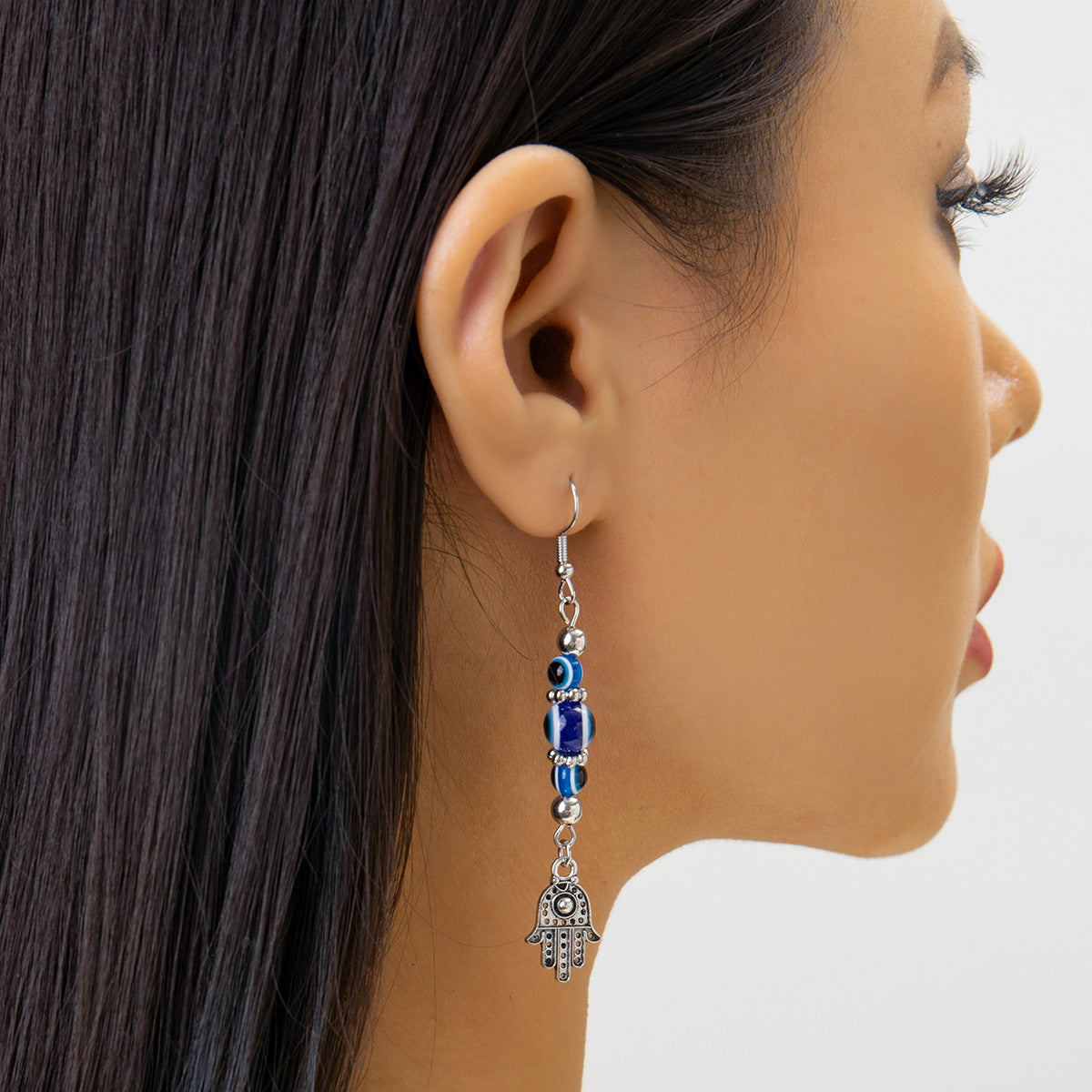 • Make a statement with these retro ethnic Buddha's hand and eyes tassel earrings