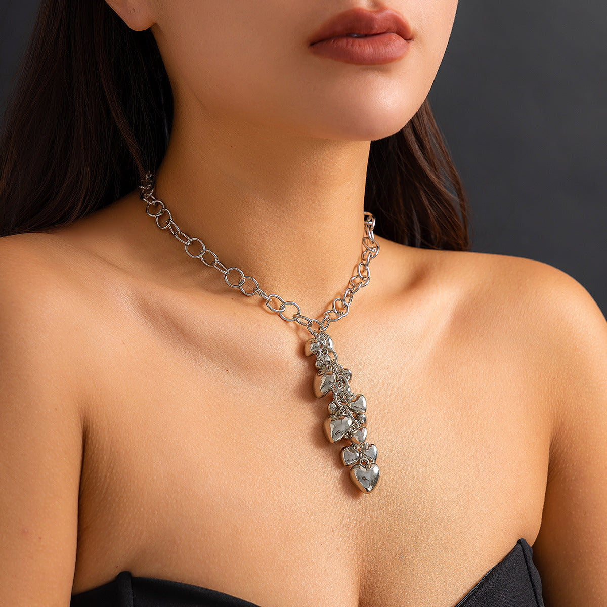 Y2K Heart-shaped Choker Necklace with Tassel Accents and Cool Ins Style