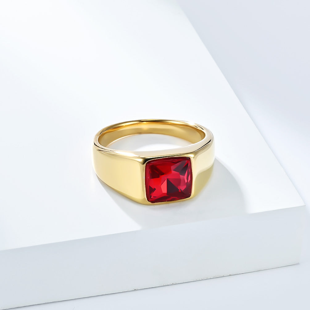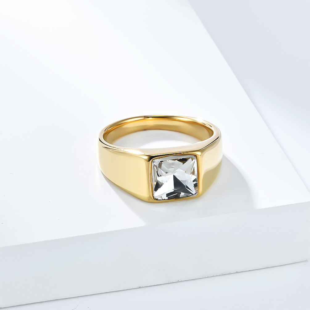 A bold, fashion-forward men's ring from Planderful that blends rugged durability with refined gemstone detailing. Designed for men who want a distinctive accessory, it features a European and American diamond-shaped cut glass gem set in durable titanium steel.