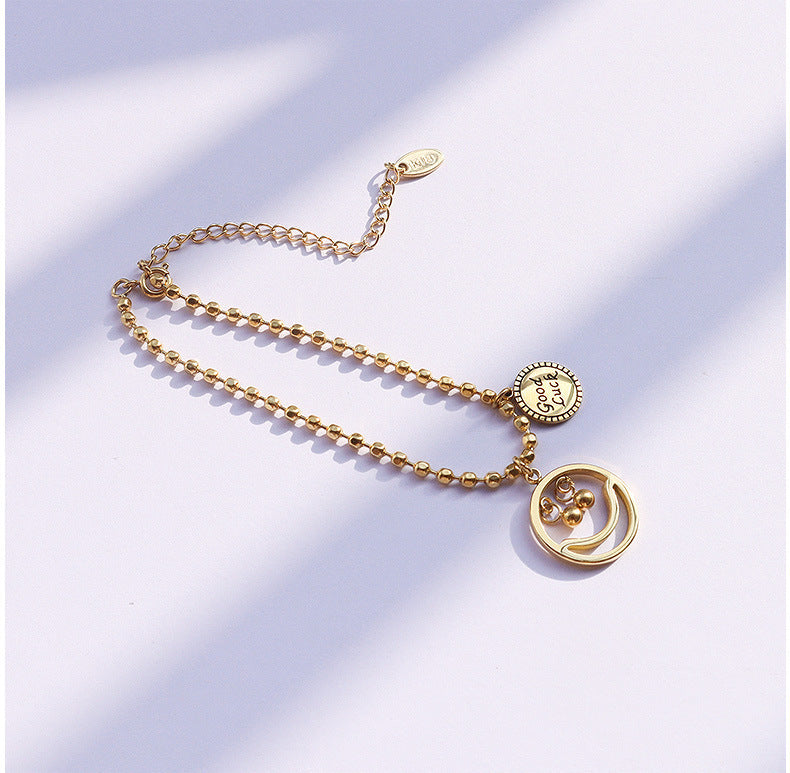 Hip Hop Smiley Face Beads Lucky Charm Bracelet in Titanium Steel