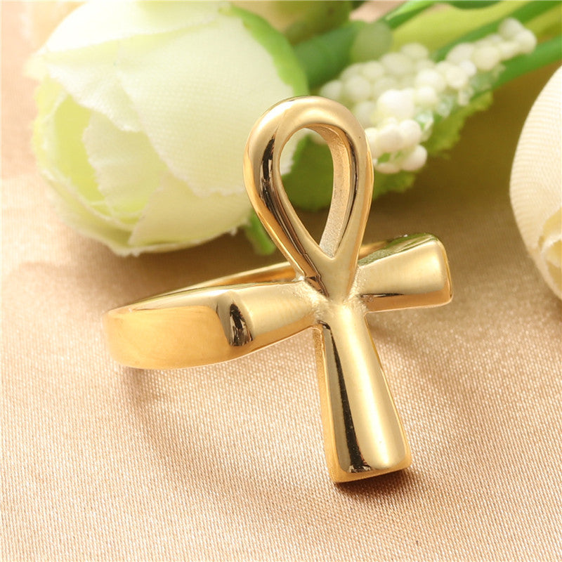 Titanium Steel Egyptian Cross Ring - Retro Men's Pharaoh Accessory
