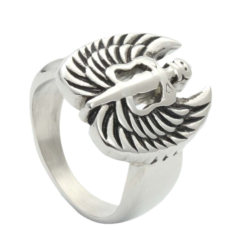 Titanium Steel Wing Cross Sword Ring for Men - Retro Punk Jewelry Direct from Manufacturer