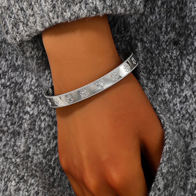 Elevate your style game with this grand bracelet that exudes charm and versatility. Whether you're dressing up for a special occasion or adding a touch of elegance to your everyday look, this bracelet is the perfect accessory to make a statement. Embrace the beauty of simplicity and sophistication with our European and American-inspired design.