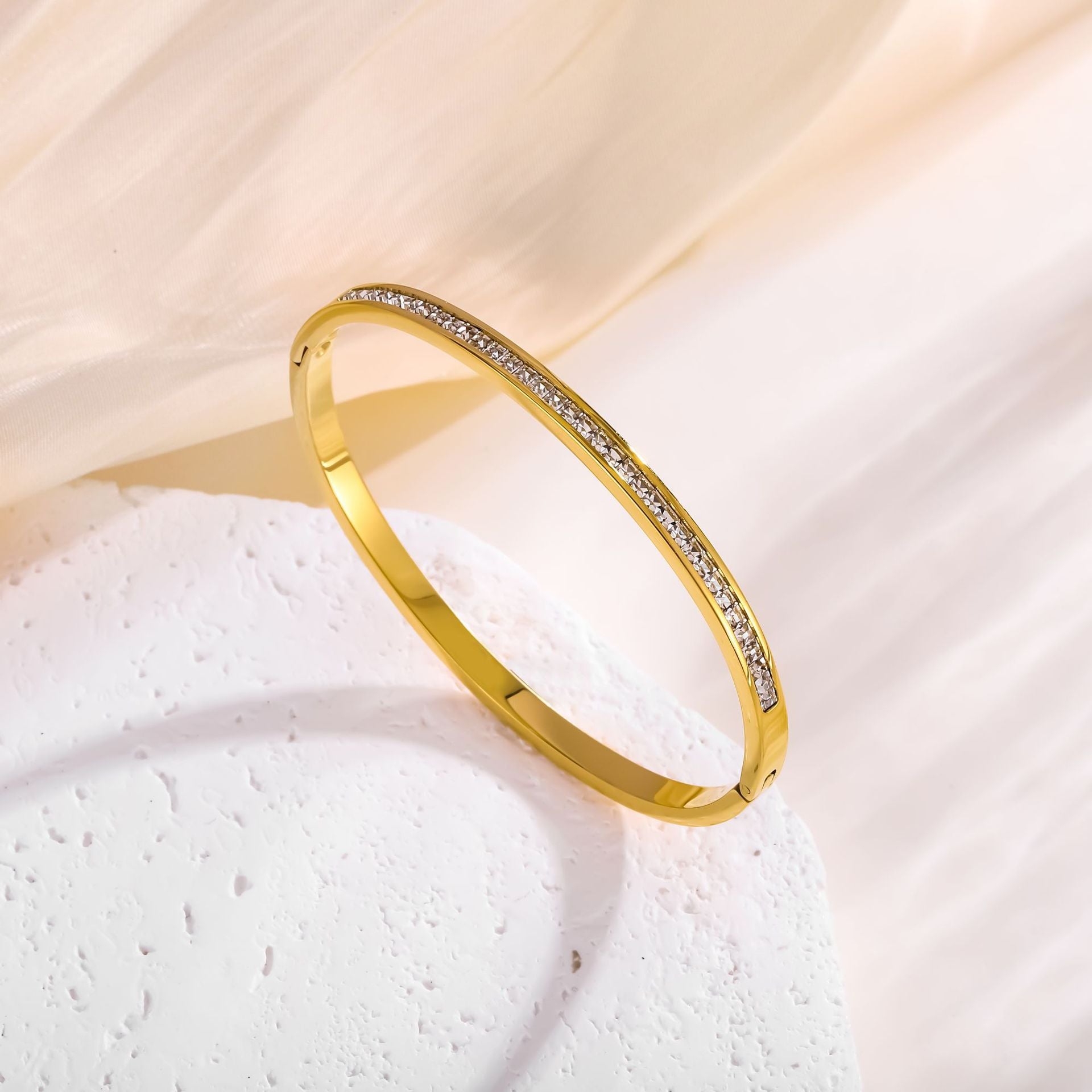 This bracelet brings a touch of luxe to daily outfits without overpowering them. The zircon-encrusted semi-round design catches the eye with just the right amount of sparkle, making it perfect for school days, after-class outings, or weekend brunches. Crafted in sturdy stainless steel, it’s built to accompany her through growing tastes and evolving styles—a reliable, timeless piece that remains relevant season after season. It also makes a thoughtful, meaningful gift for birthdays, graduations, or celebrations of personal milestones, delivering both style and sentiment in one elegant package.