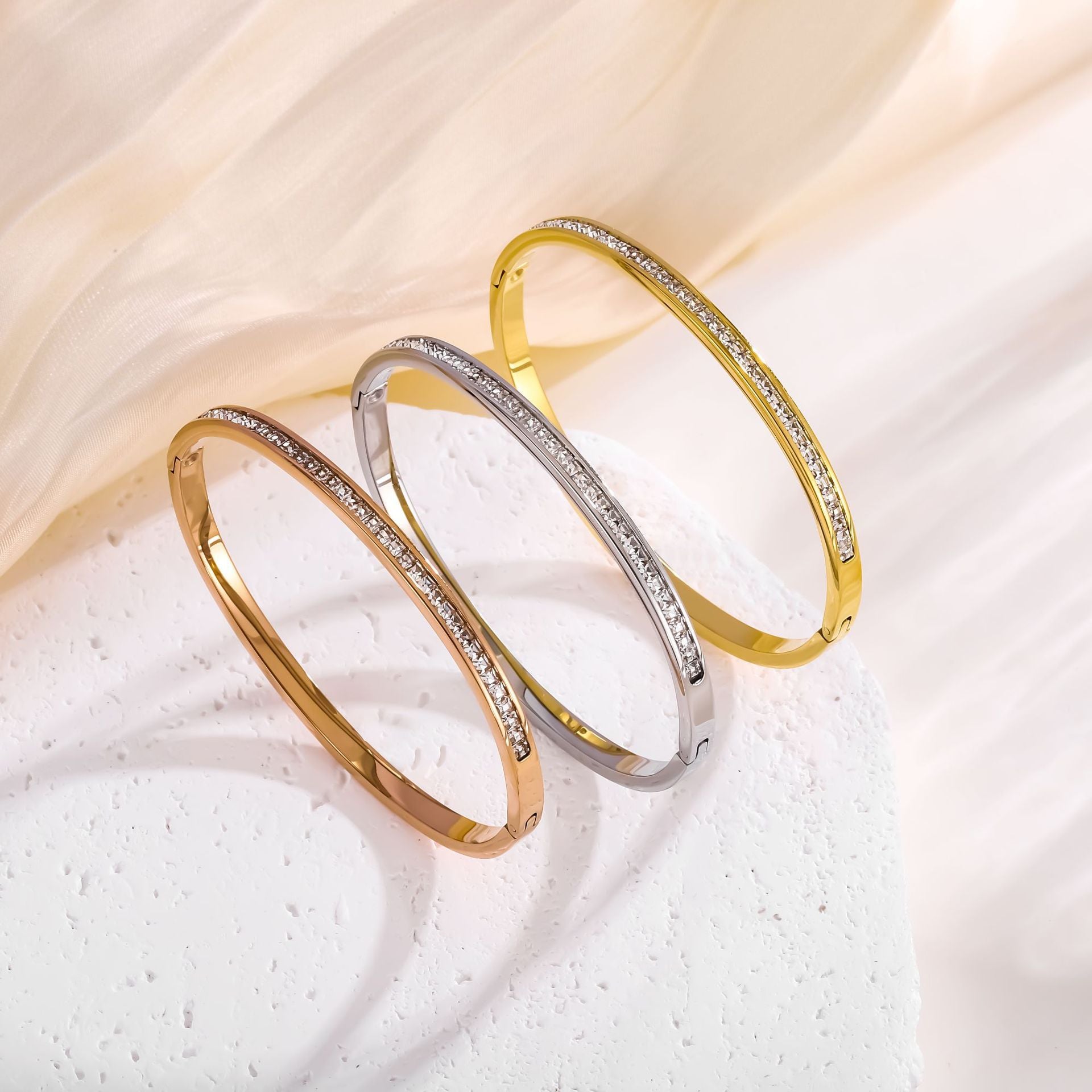 Planderful Jewelry Zircon Encrusted Stainless Steel Bracelet For Women Timeless Sparkle