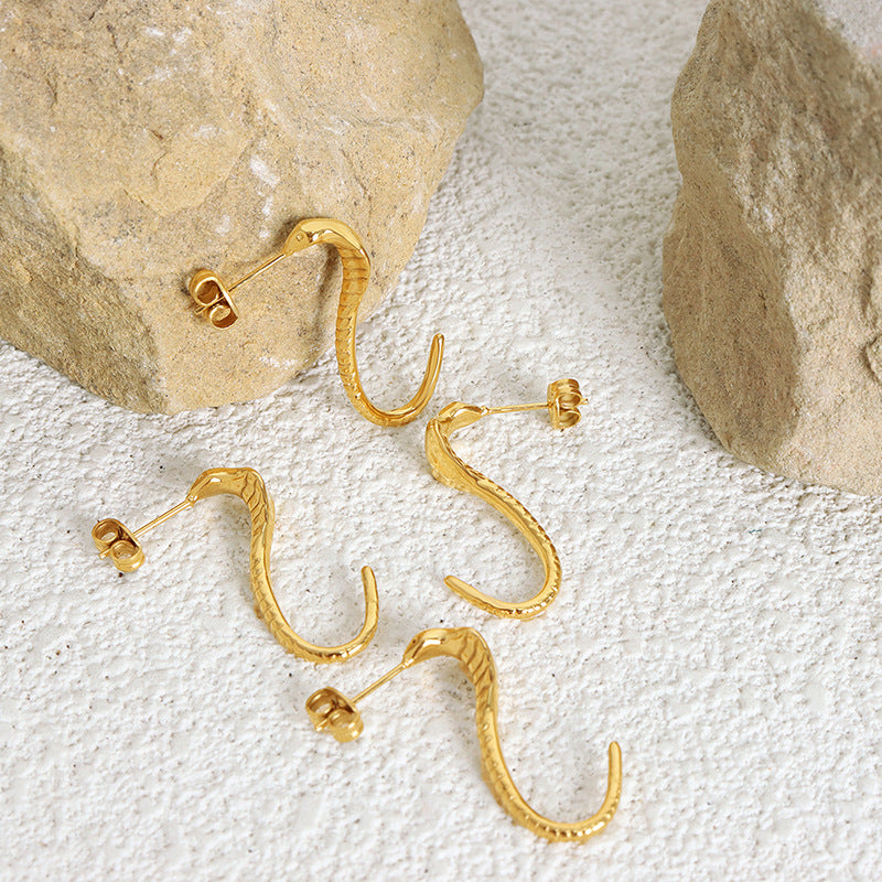 Snake Design Titanium Steel Gold-Plated Earrings - Chic and Edgy Jewelry for Women