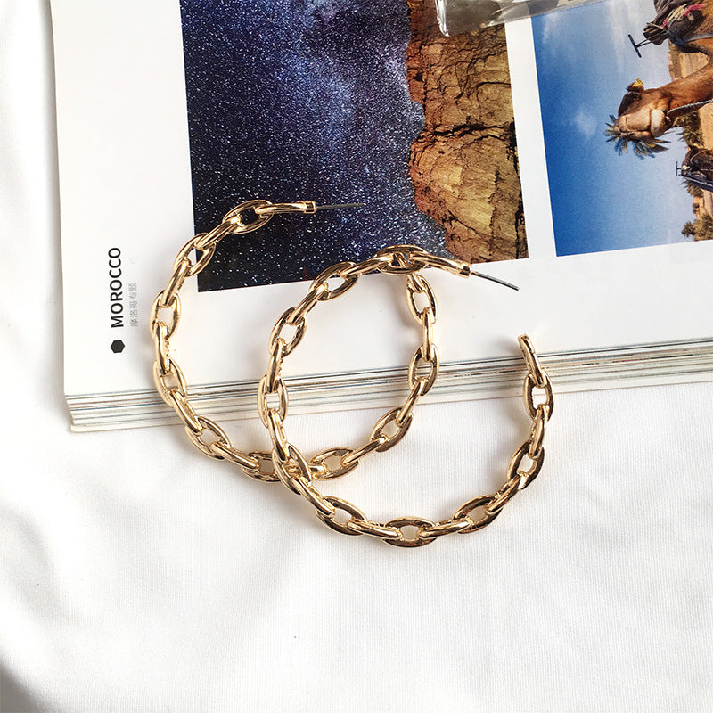 • Make a statement with the exaggerated chain circular earrings, adding a touch of boldness to your look