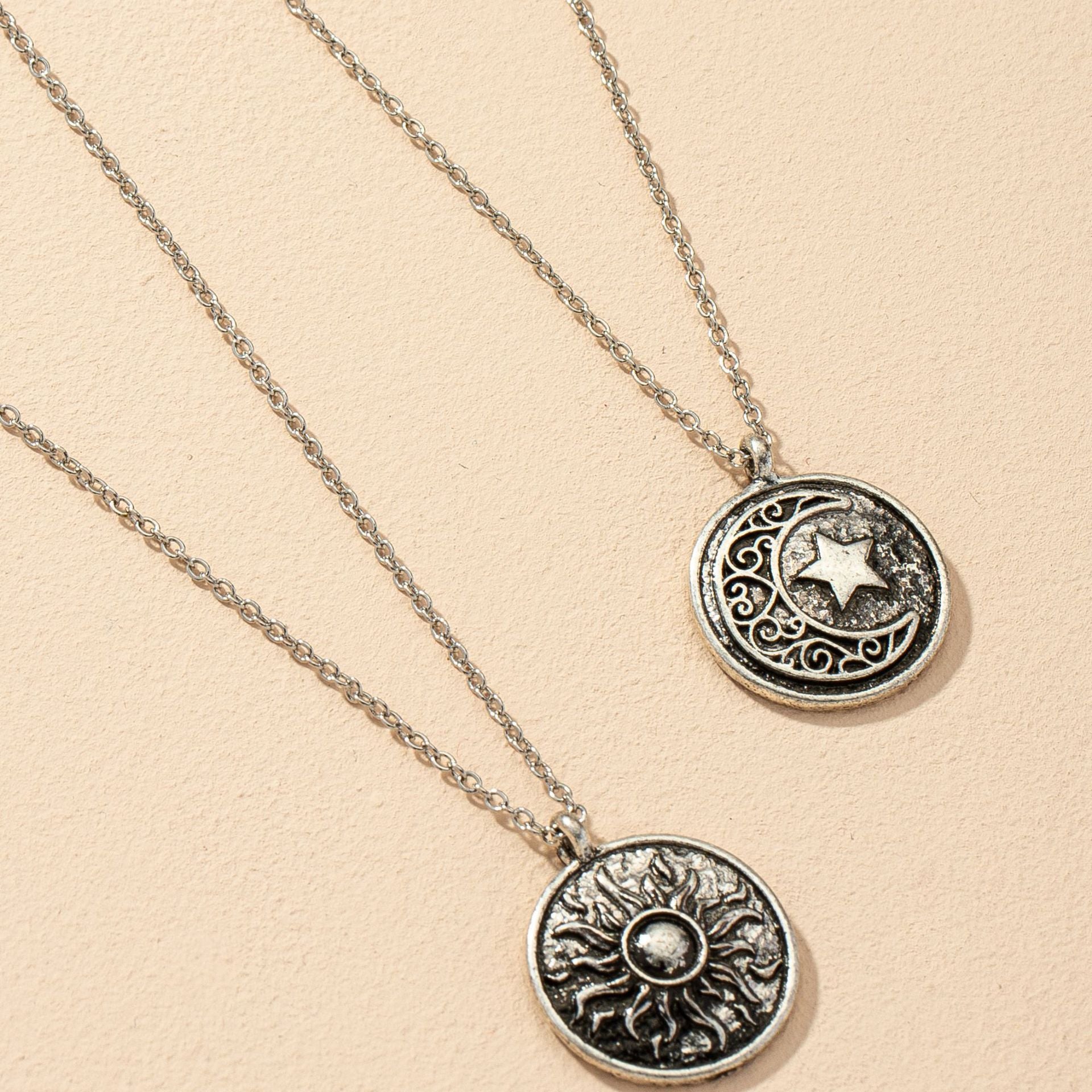 Enhance your look with this stunning necklace set inspired by European and American fashion trends. The thick chain design adds a bold touch, while the sun, moon, and stars elements bring a retro charm to your style. Whether you're into cross-border trade accessories or simply love unique jewelry pieces, this set is a must-have. Made with high-quality metal, this set is not only stylish but also durable. Elevate your accessory game with our Vienna Verve collection!