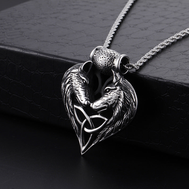 Embrace your wild side with our European and American retro domineering double wolf head titanium steel pendant. This striking piece of jewelry is designed for the modern man who values individuality, strength, and style.