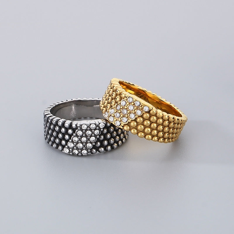 Men's Hip-Hop Inspired 18k Gold Plated Zircon Bead Ring - Retro Stainless Steel Design